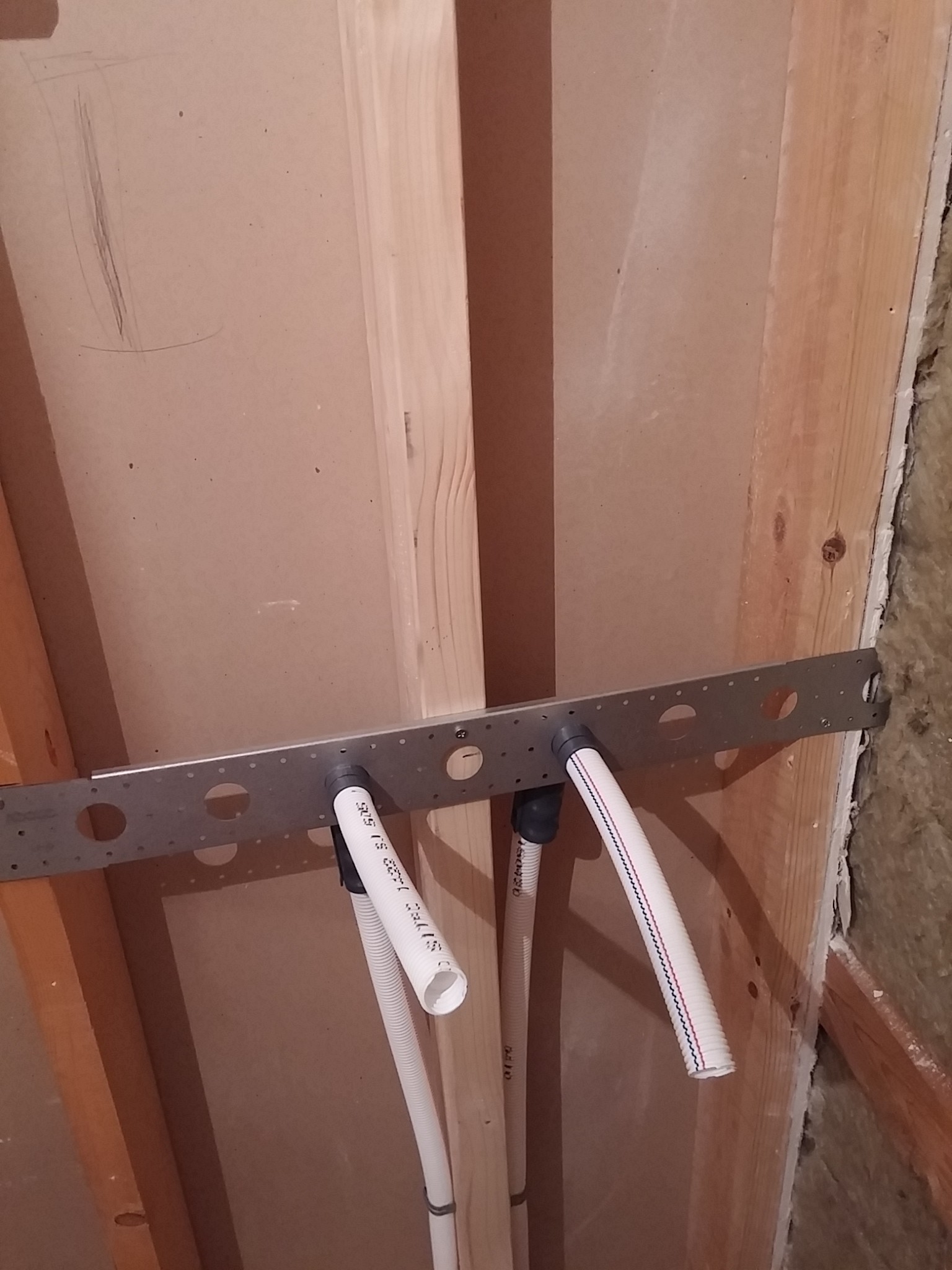 Avloppsröret är för nära väggen.. Har just nu 7.5cm från reglen till ytterkant. Har läst det ska väll minst vara 6cm från vägg så man får dit tätskiktet riktigt. Jag kommer ju att hamna på 4.5cm när playwood och gips är på plats.
