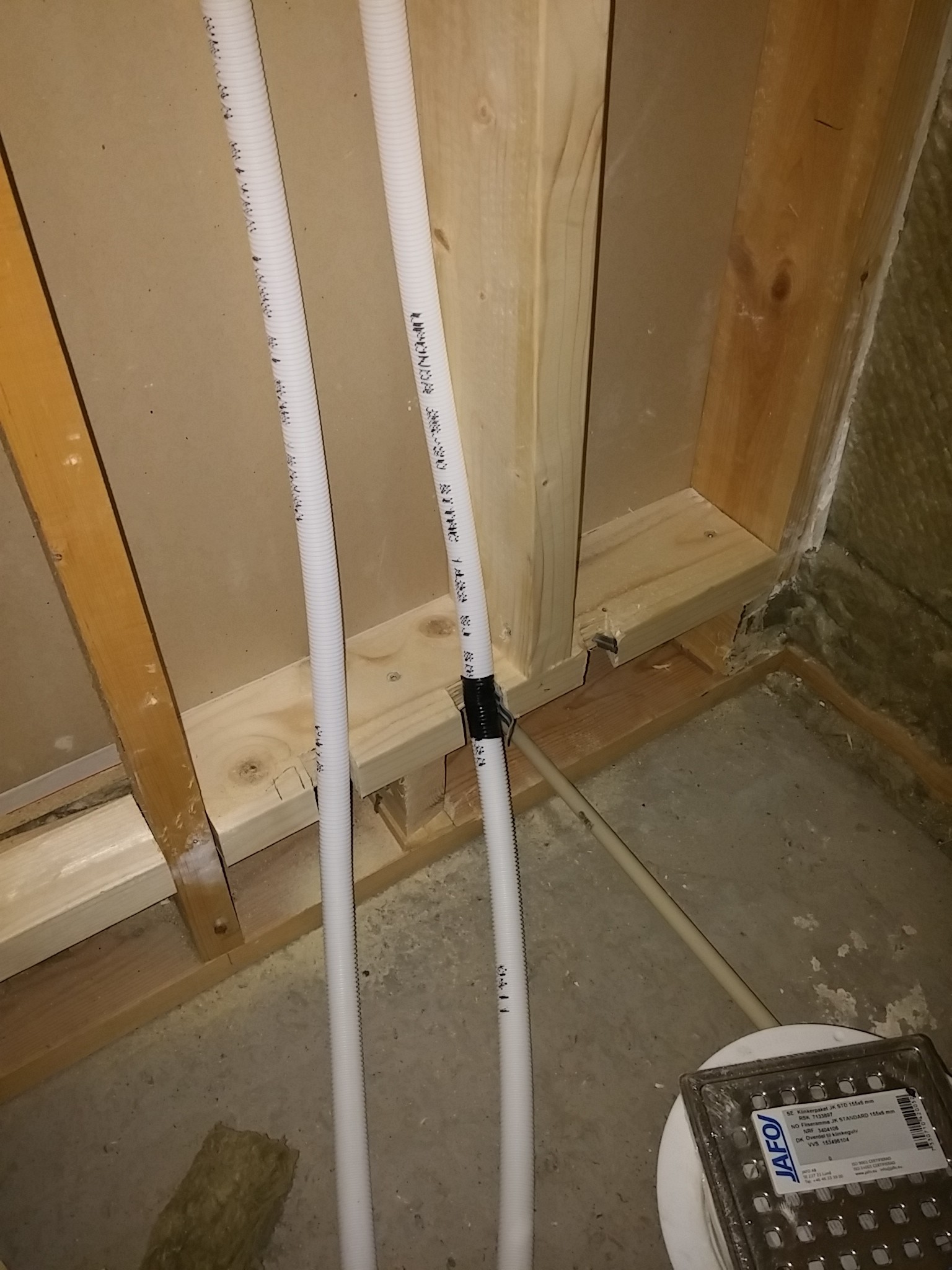 Jag har inte bestämmt ännu vad det det blir på golvet. Men jag ska fästa rören lite bättre.