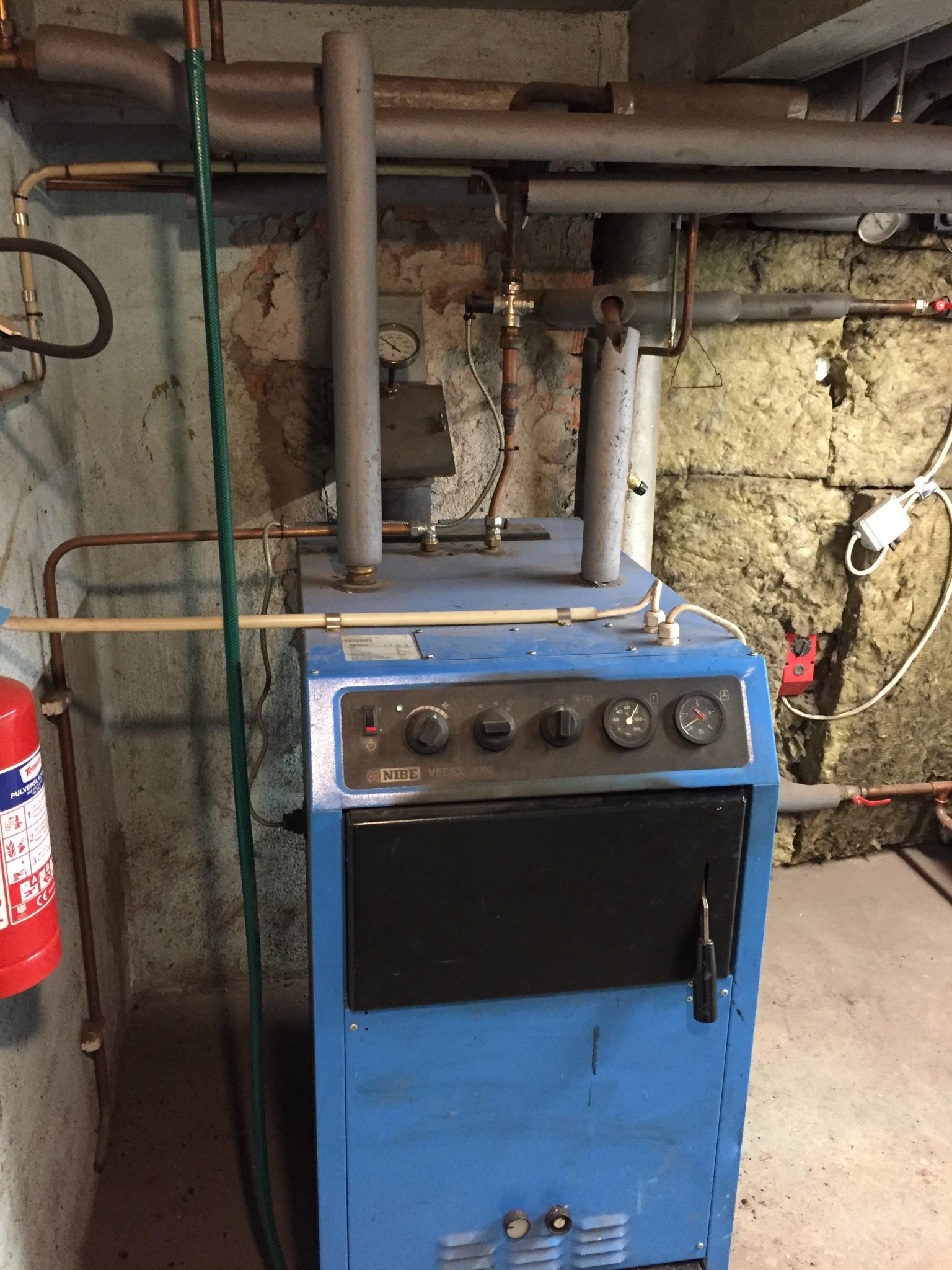 Jag är nybliven husägare sedan drygt 1 vecka tillbaka. Uppvärmningen är med Nibe Vedex 3000 som är kopplade till 3 styck ackumulatortankar med 1500 L, 500 i varje, den ena tanken har varmvatten beredare på 120 L.