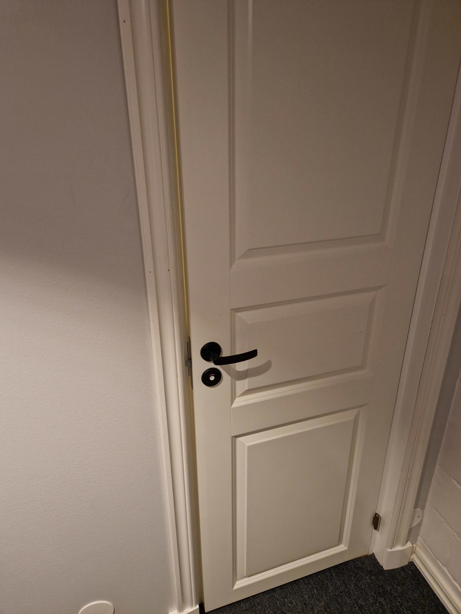 Sedan 4 veckor tillbaka går 3 dörrar (alla av samma modell) inte att stänga igen. Den nedre delen är ca 2-3mm "för stor" för karmen. Oklart vad det är för fabrikat på dörrarna men de har s.k snap-in gångjärn. Jag har provat att skruva där gångjärn sitter men utan resultat, de är statiska och ingen av skruvarna verkar vara till justering.