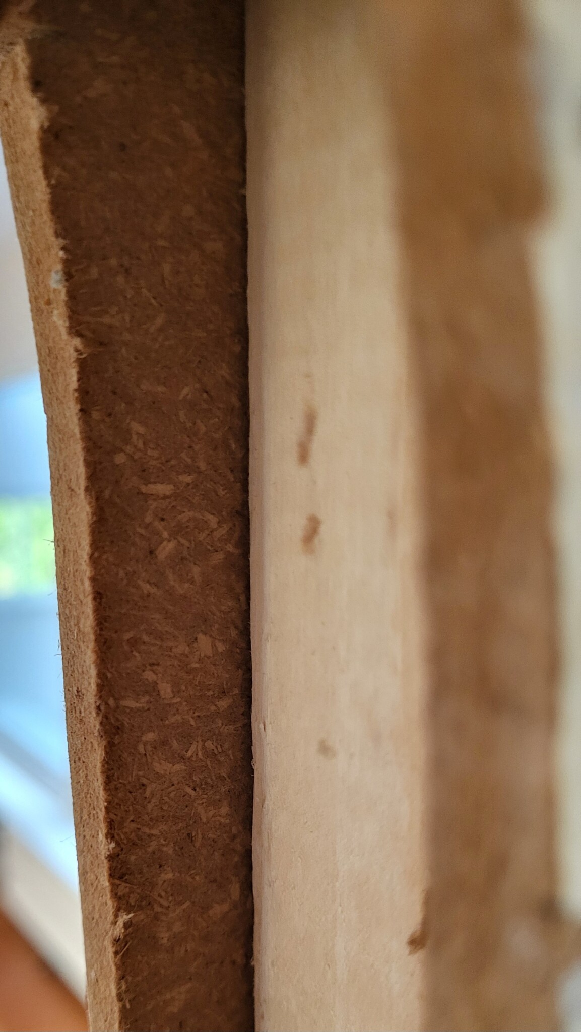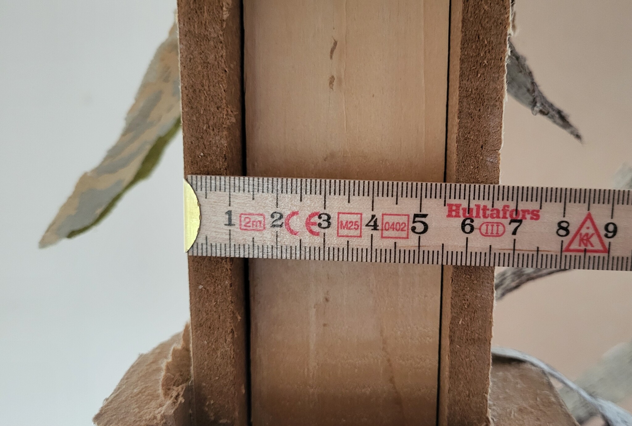 Jag vill sätta igen en dörröppning i en mellanvägg i mitt (nya) 60talshus. Jag trodde det var gips på reglar men det är det såklart inte, utan någon träfiberskiva med ca 10 mm i tjocklek på 45 mm träreglar. Och så flera lager tapet på. Går det att säga vad det är för skiva?