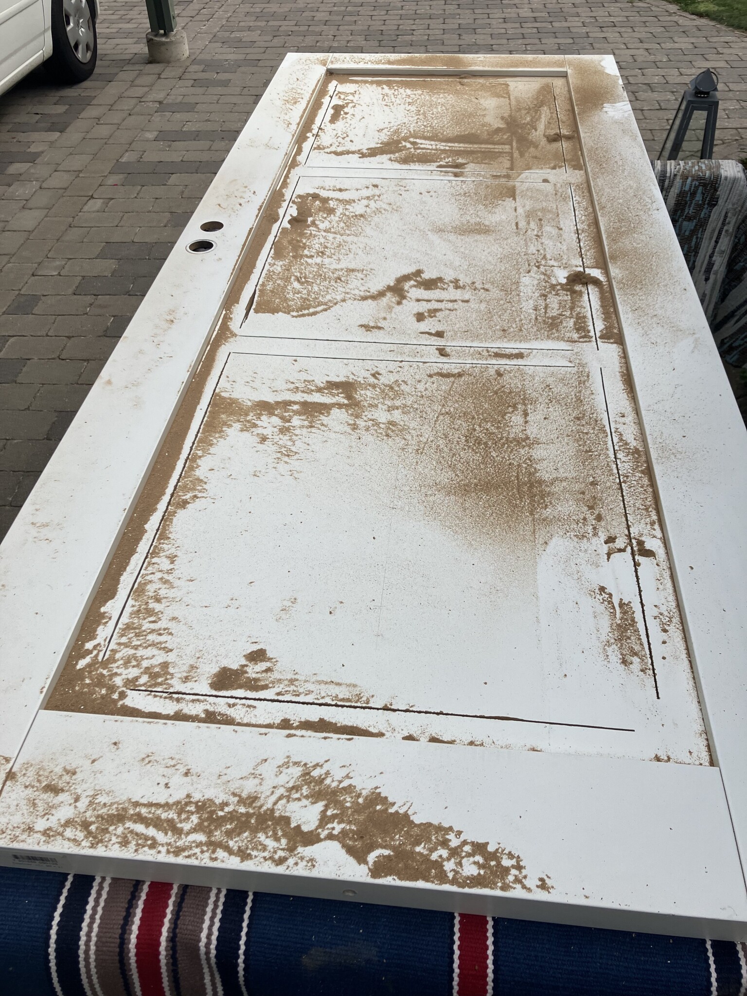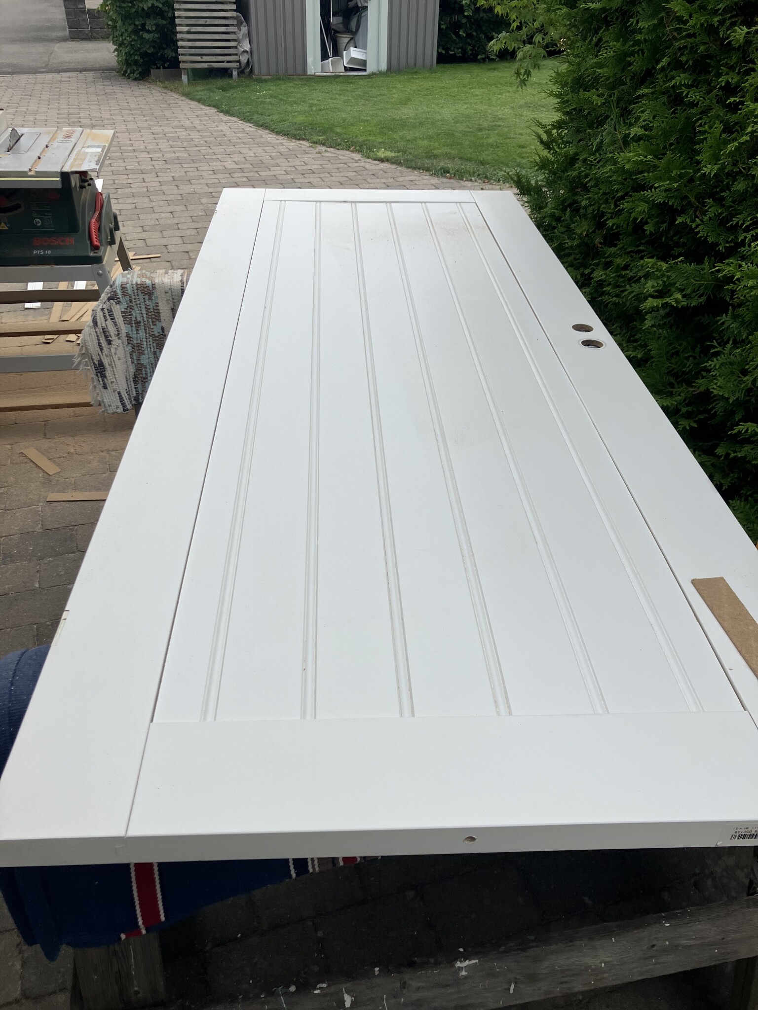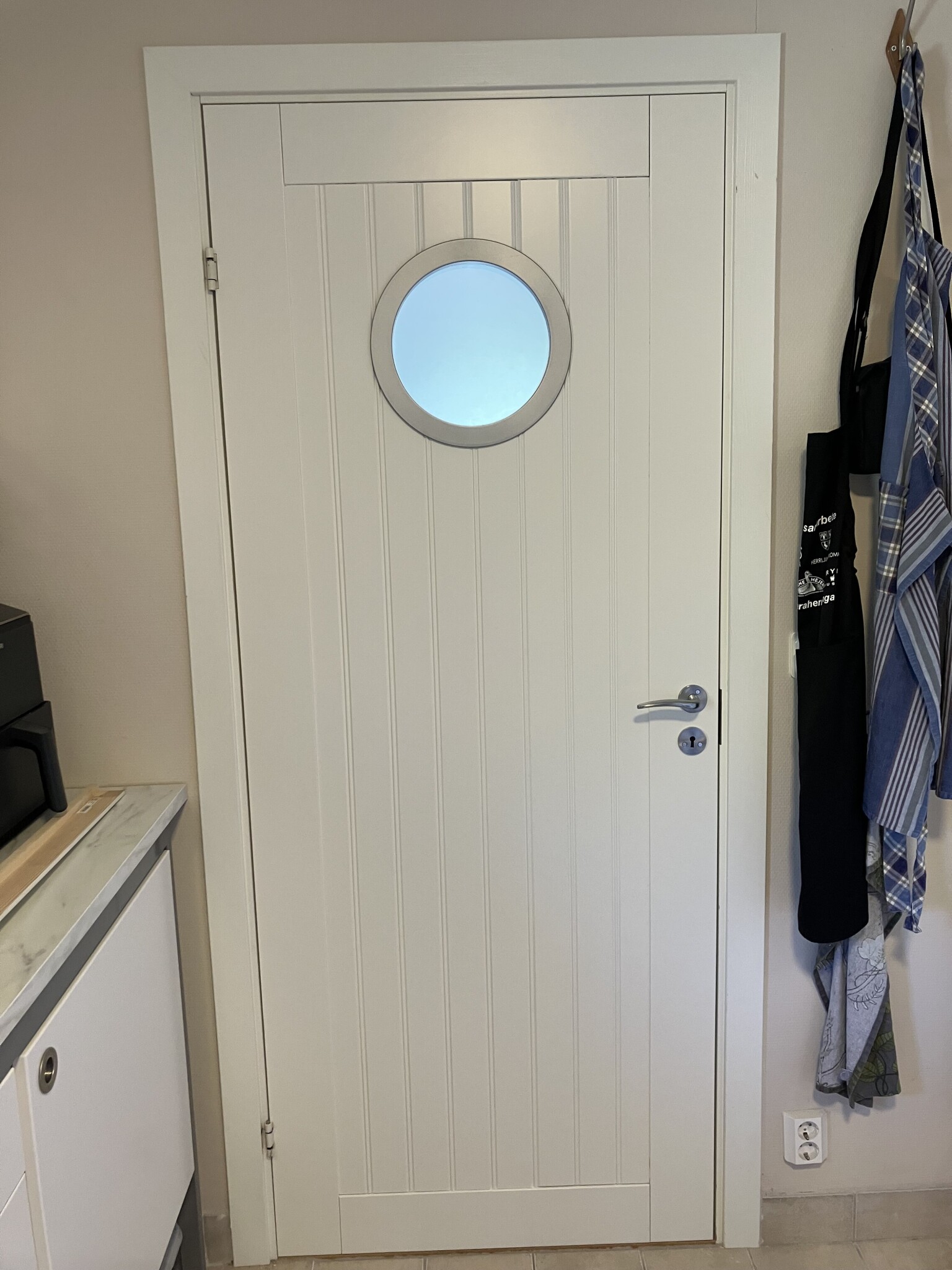 Avslut dörrprojekt, omlackad och fönster .på plats.
