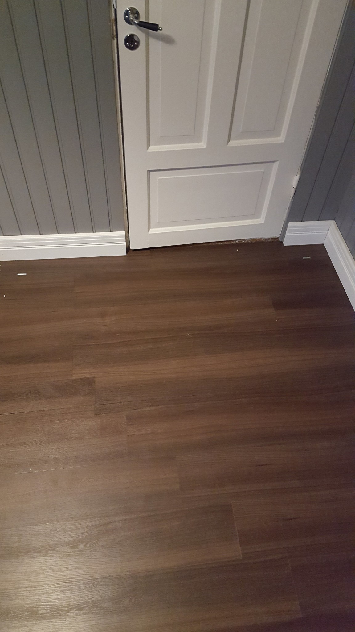 Har lucka i hallgolvet och vinylklick, jag gjorde så att gångjärn ligger före golvet och golvet kapade jag strax innan luckan och sen tog jag den kapade biten och limmade på luckan med 1mm spalt mot biten som redan låg så den är i princip osynlig.