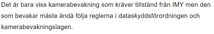 Kan det vara okej att göra inspelning om man ser till att den raderas inom 30 dagar? Jag har förstått det som att det är en gyllene gräns där man då inte behöver beakta GDPR, i alla fall vid videoövervakning.G g.kraft skrev: