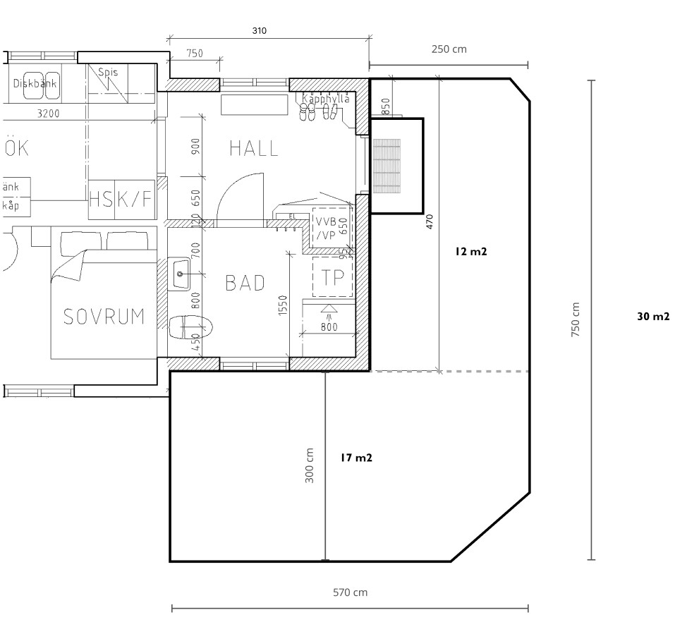 Se foton. Höjdskillnad mark till panel är som mest ca 85 cm. Bifogar även en skiss på tänkta altandäcket, utan några detaljer klara alls, mest för illustration av idén.