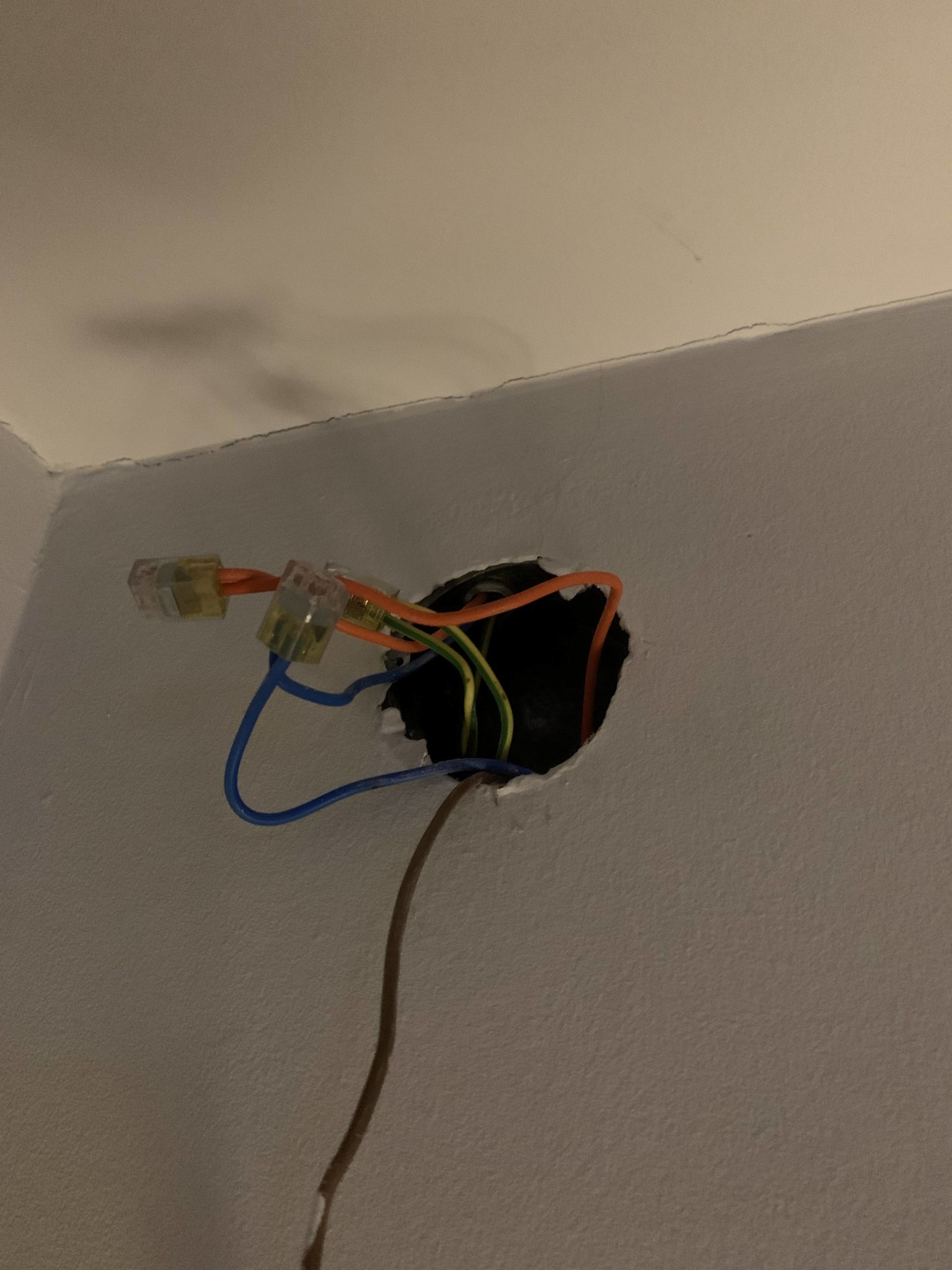 Alla kopplingar fram till dosan på bild går bakom vägguttag och tänkte ha pucken i kopplingsdosan alt bakom lamputtaget i taket.