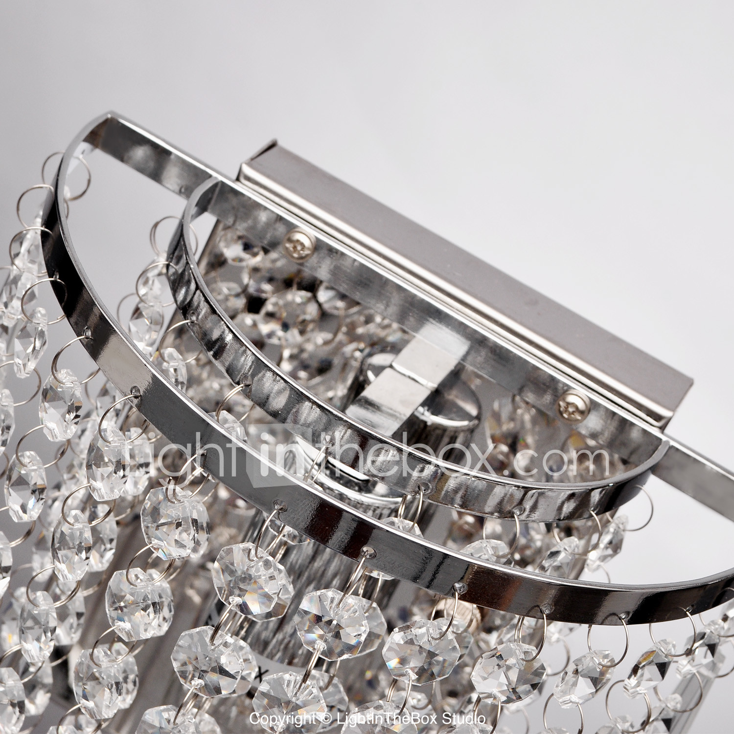 Hela plattan med kristallerna (vilket nu är en komplett lampa), sätter du fast i väggfästet. Hur den ska sitta fast framgår inte av bilderna, då man inte ser hela baksidan på någon bild, och eventuella plåtflikar eller spår som den kan hängas med på väggfästet syns inte på de bilder du bifogat här.