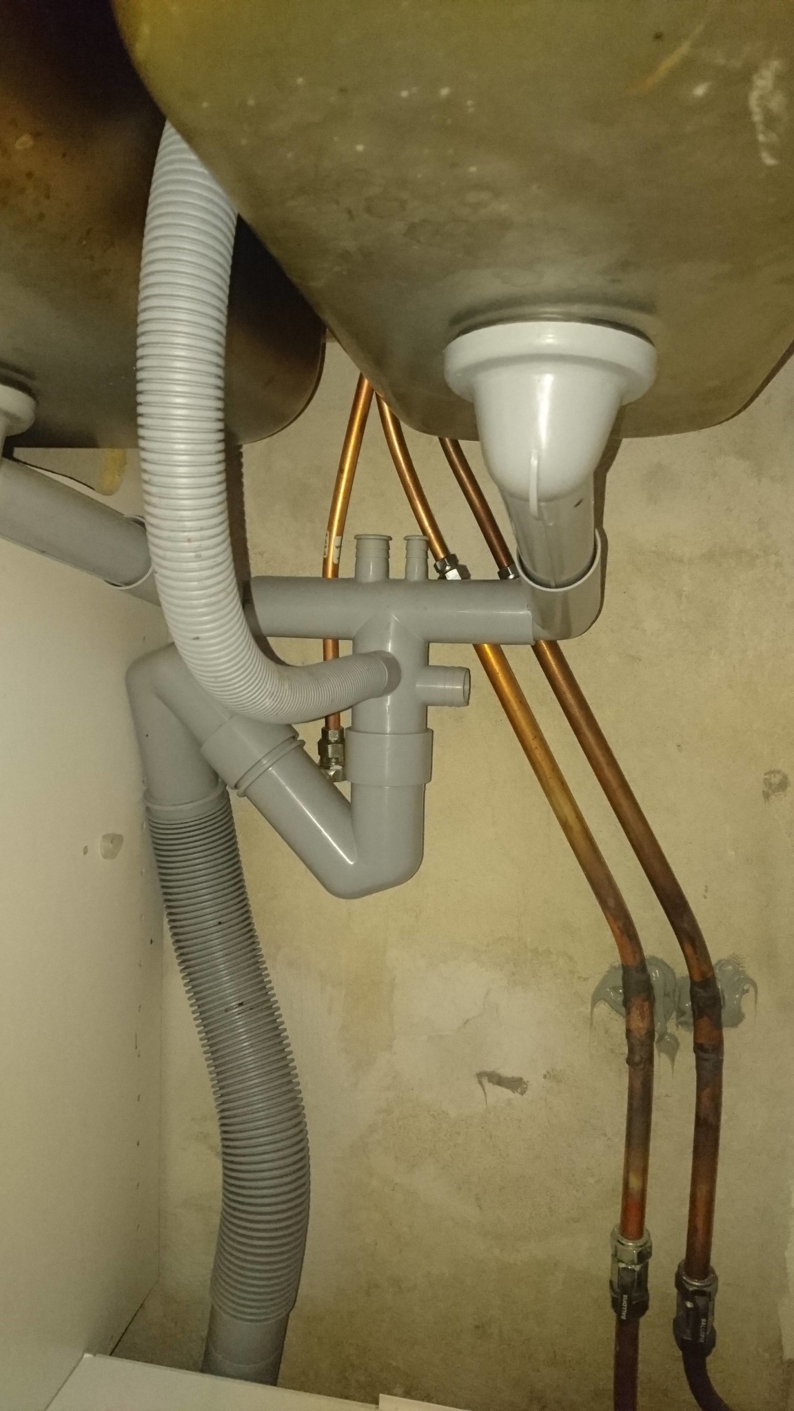 det vänstra kopparröret är in till diskmaskinen där kopplar du på inloppsslangen