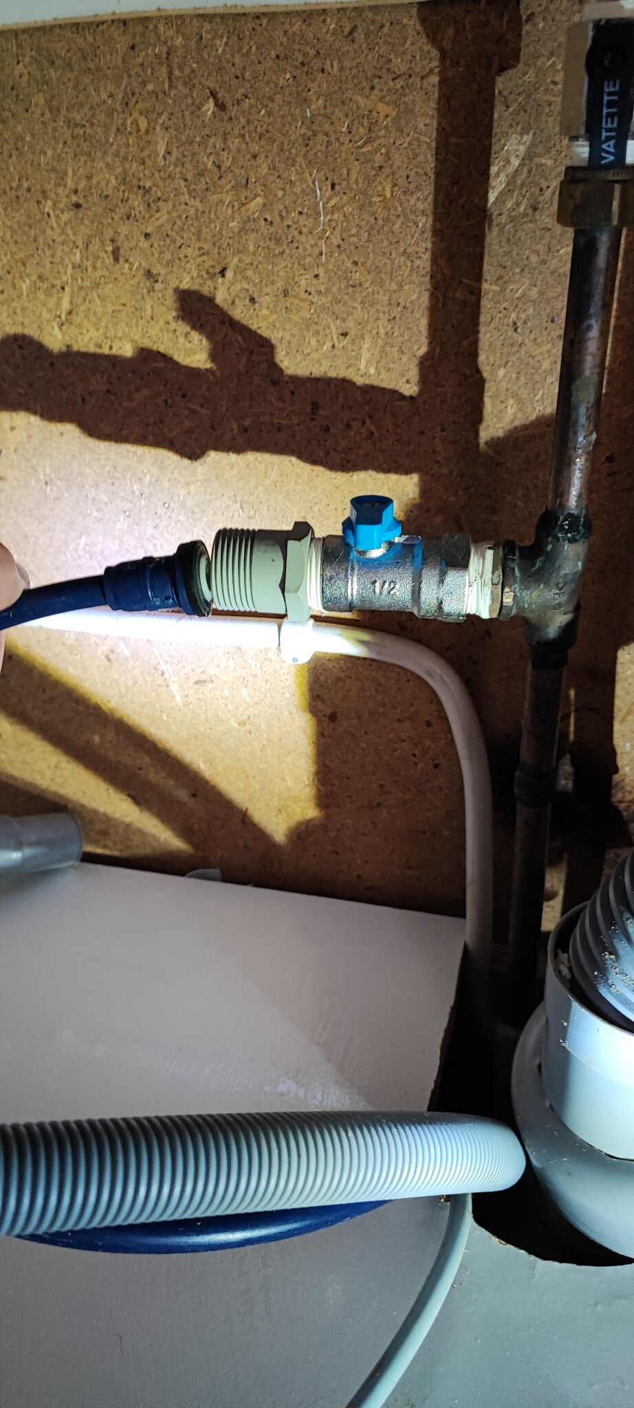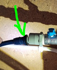 Här saknar du muttern, den hänger någonstans på den blåa slangen, bara trä med och ansluta!