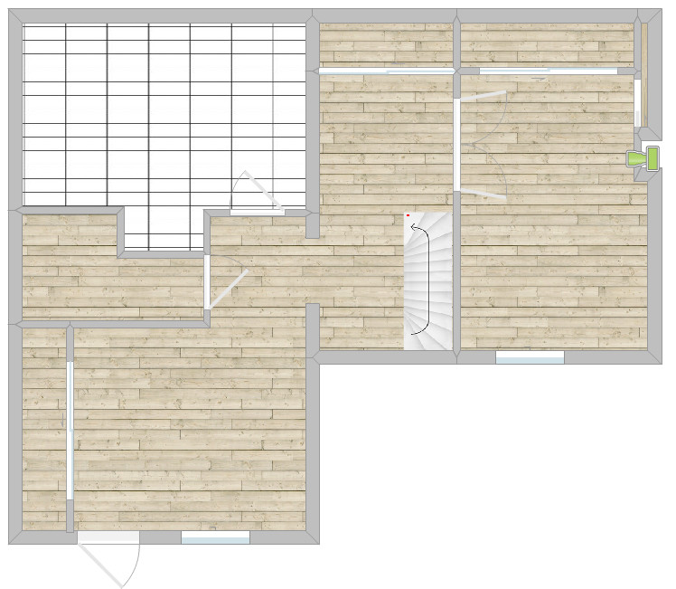 Jag har golvvärme ingjuten i plattan på källarplan och det handlar om ca 60kvm med ungefärlig planlösning enligt bild. 3 slingor ligger i plattan och jag har dessvärre ingen aning om hur de tre slingorna ligger. Vi har svårt att hitta rätt inställningar för att uppnå god komfort i källaren - oftast blir det för varmt till höger på bilden och lite för kallt nere till vänster.