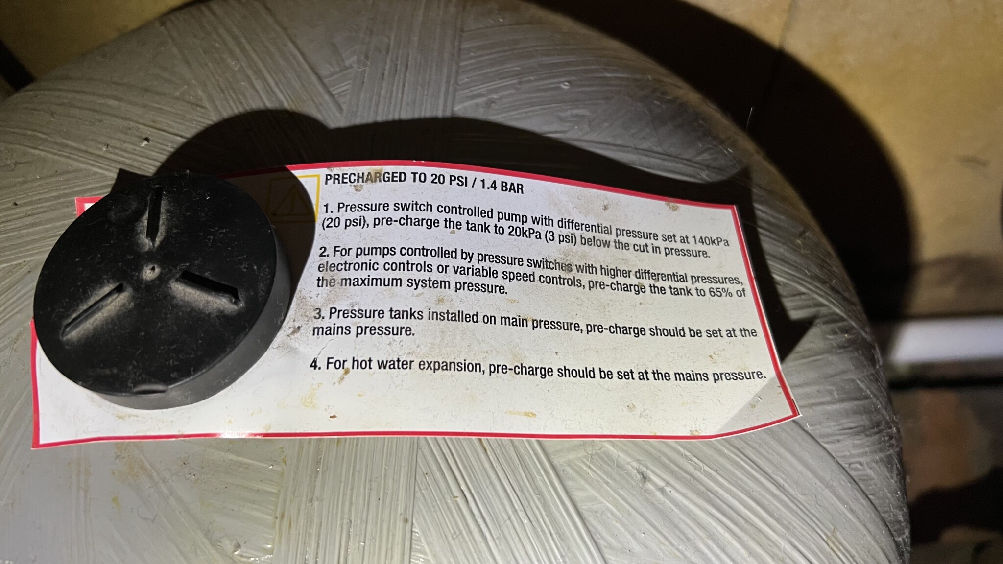 Jag har i nuläget inte gjort någon kontrollmätning av nuvarande förtryck då jag inte vill tömma systemet i onödan pga ovan nämnda situation med mängden tillgängligt vatten i brunnen samt att jag heller inte tagit loss och gjort rent tryckströmbrytaren men den förefaller fungera som den ska med på/avslag varav jag känner att jag gärna slipper det då det är lite brist på verktyg för ändamålet här i skrivande stund.