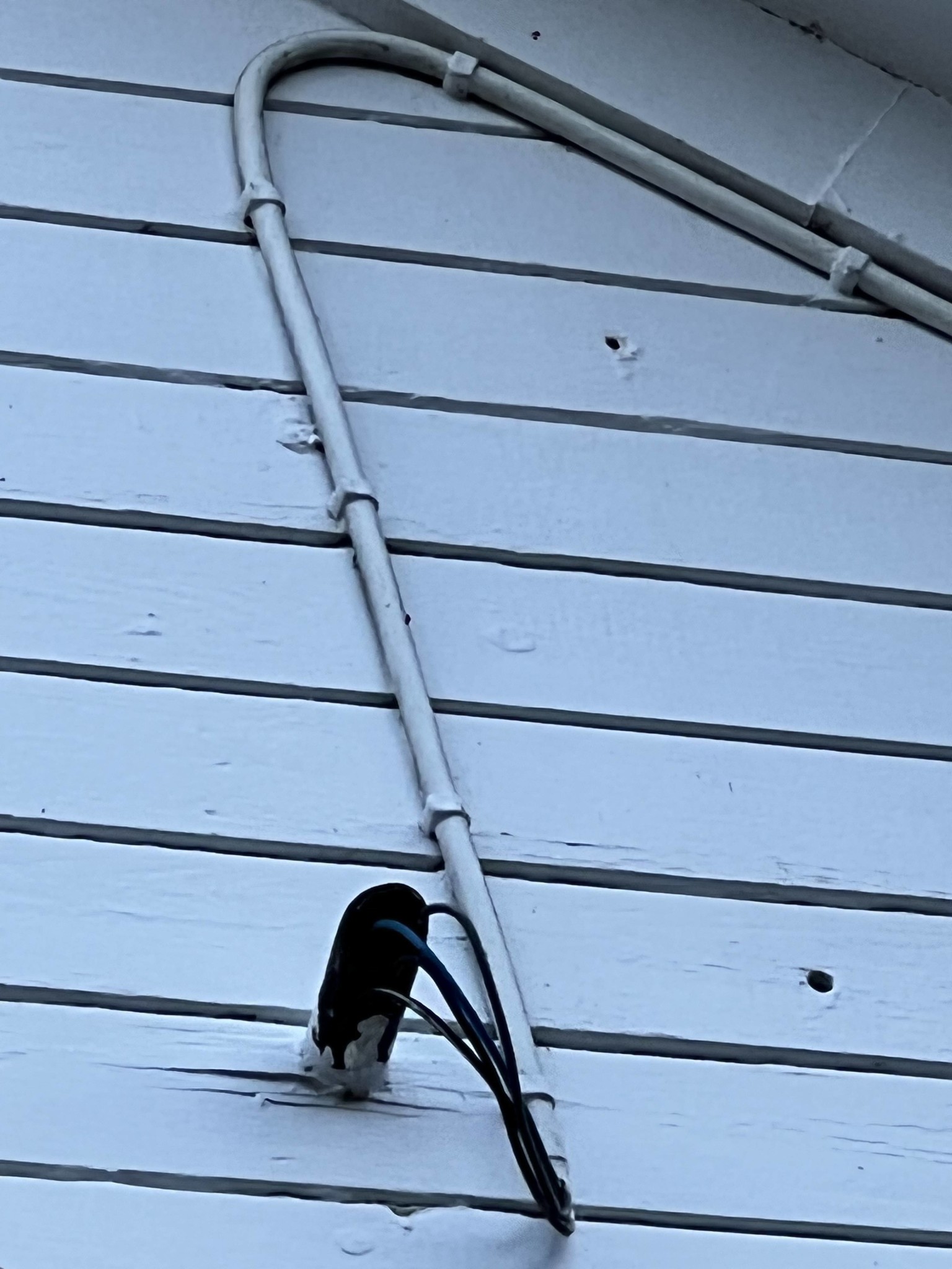 Antar att man gått från luftledning till nedgrävd matning, men känns som man skalat lite väl långt och dragavlastningen kanske sådär