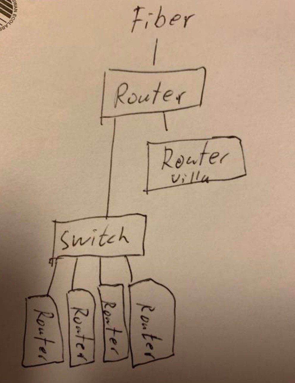 En router för att dela internet till villan & lägenheterna, sedan en router för varje boende.
