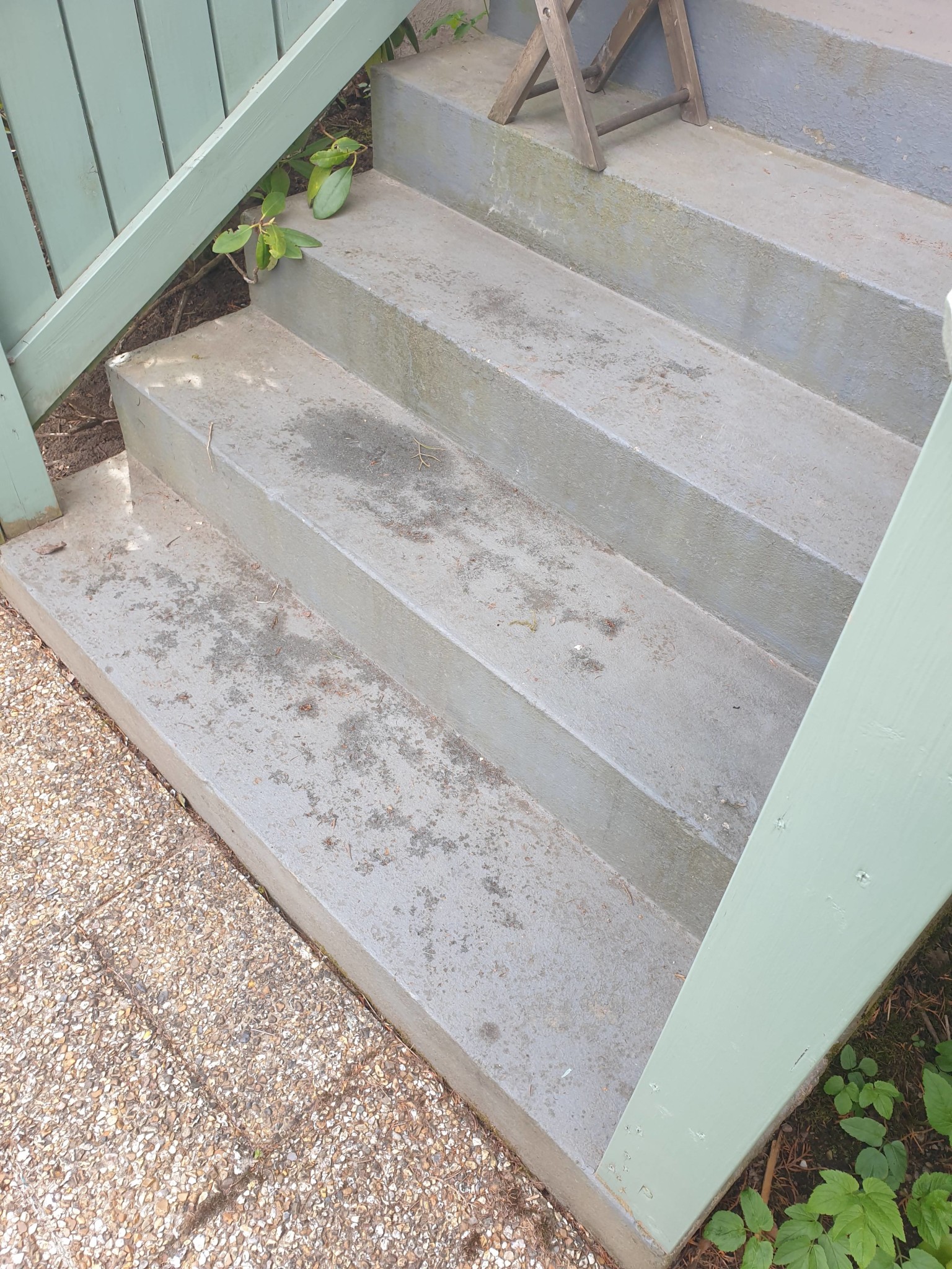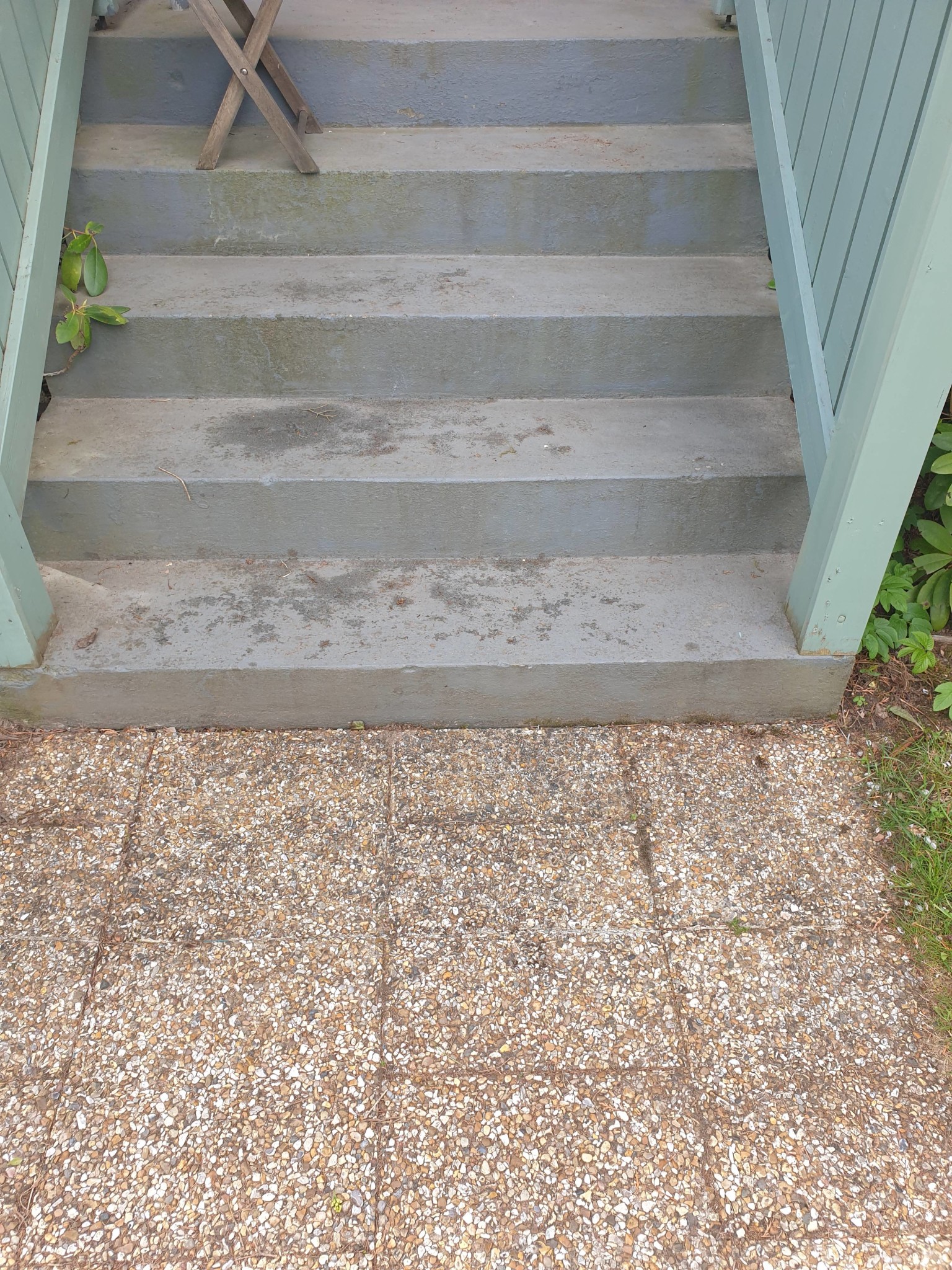 Trappan är sådan att vatten blir liggande snarare än att rinna av.