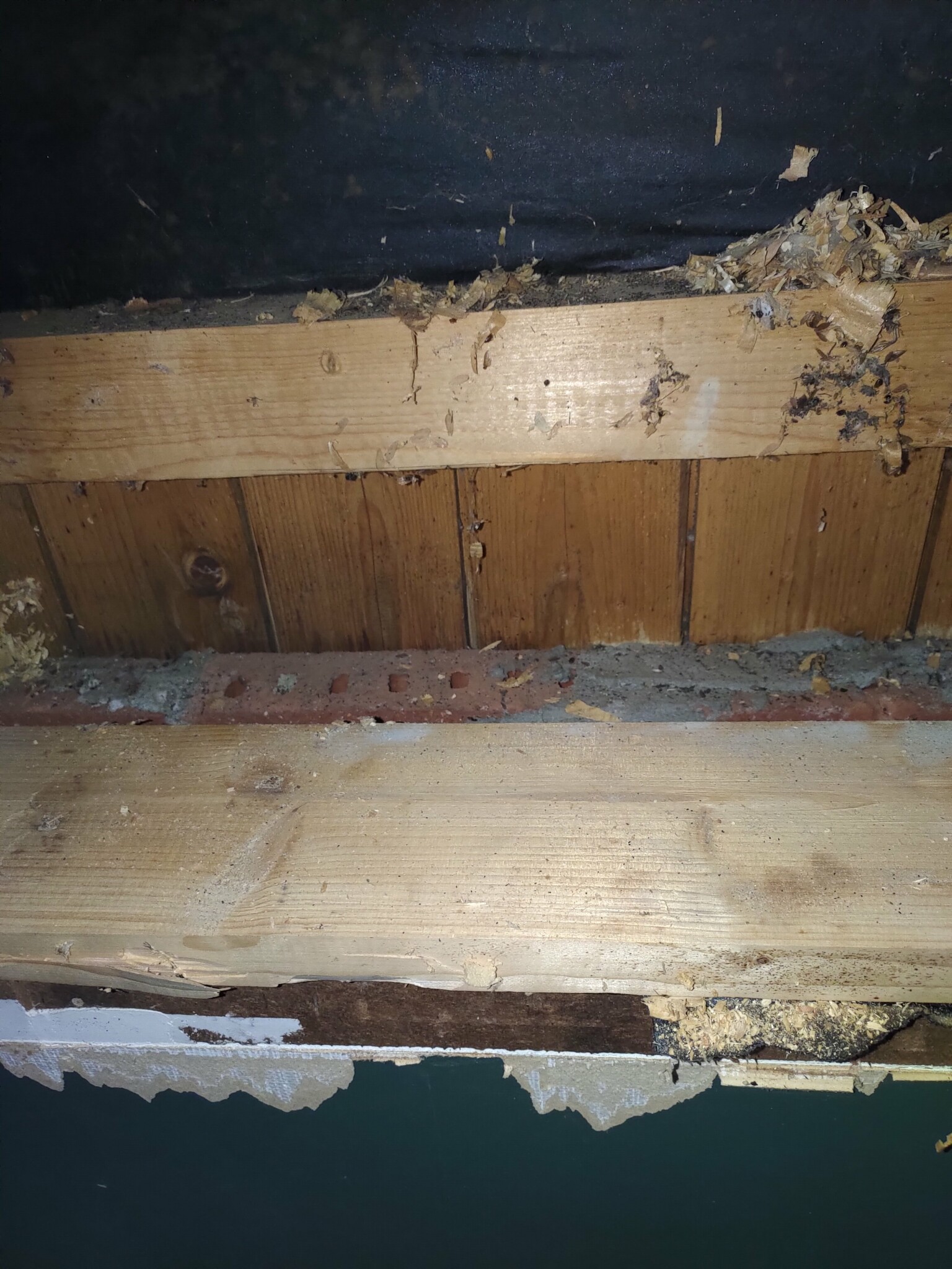 Vi har ett tvåvåningshus med källare från 1930, gamla stommen bestod utifrån sett av puts, dubbla tegel med luftspalt, karbamidskum(1980), panel, spännpapp.