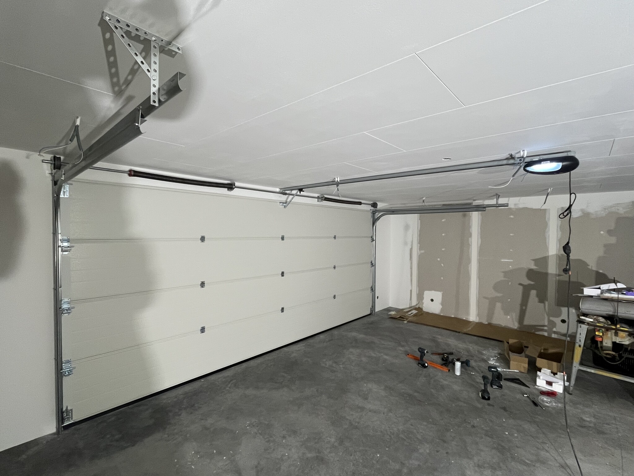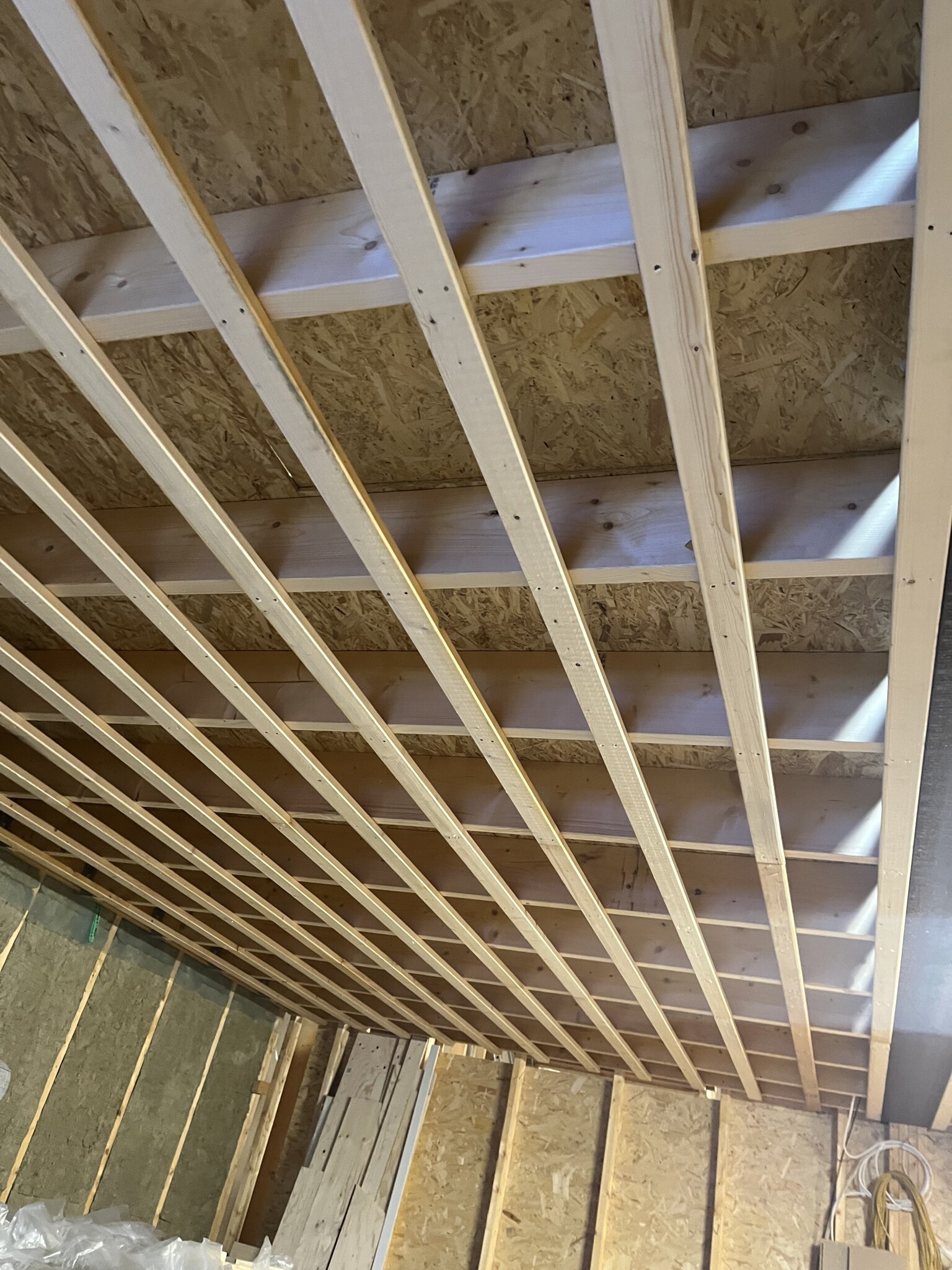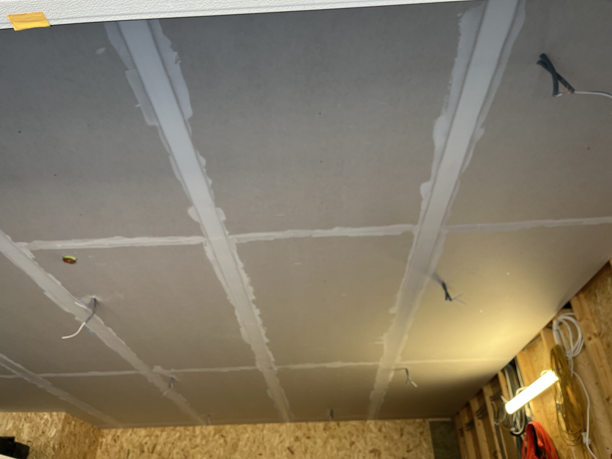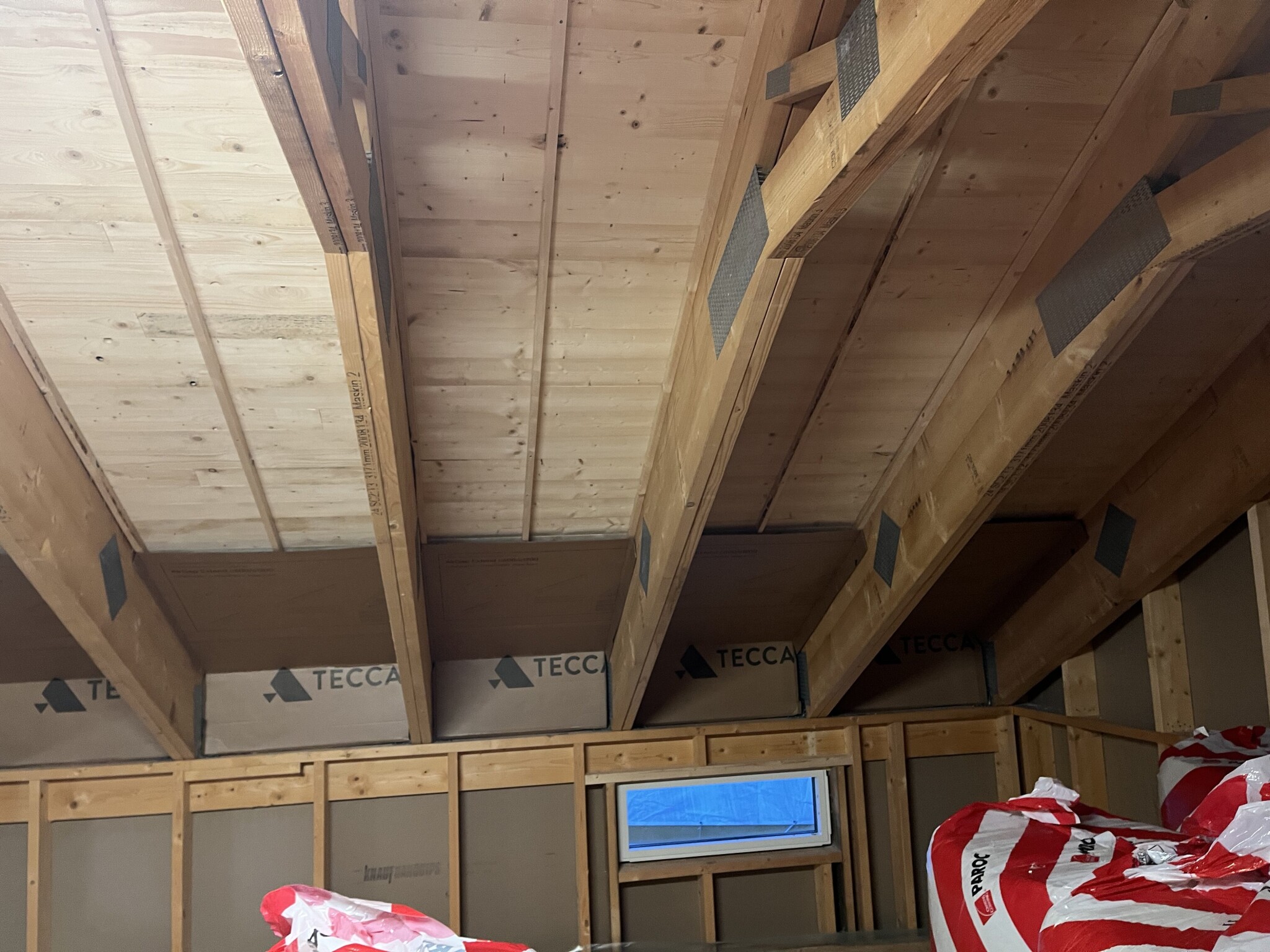 Som jag nämnt tidigare så håller jag på i garaget. Har fått upp gles i bjälklaget, luftat taken, isolerat övervåningen samt plastat och glesat övervåningen. 🙂