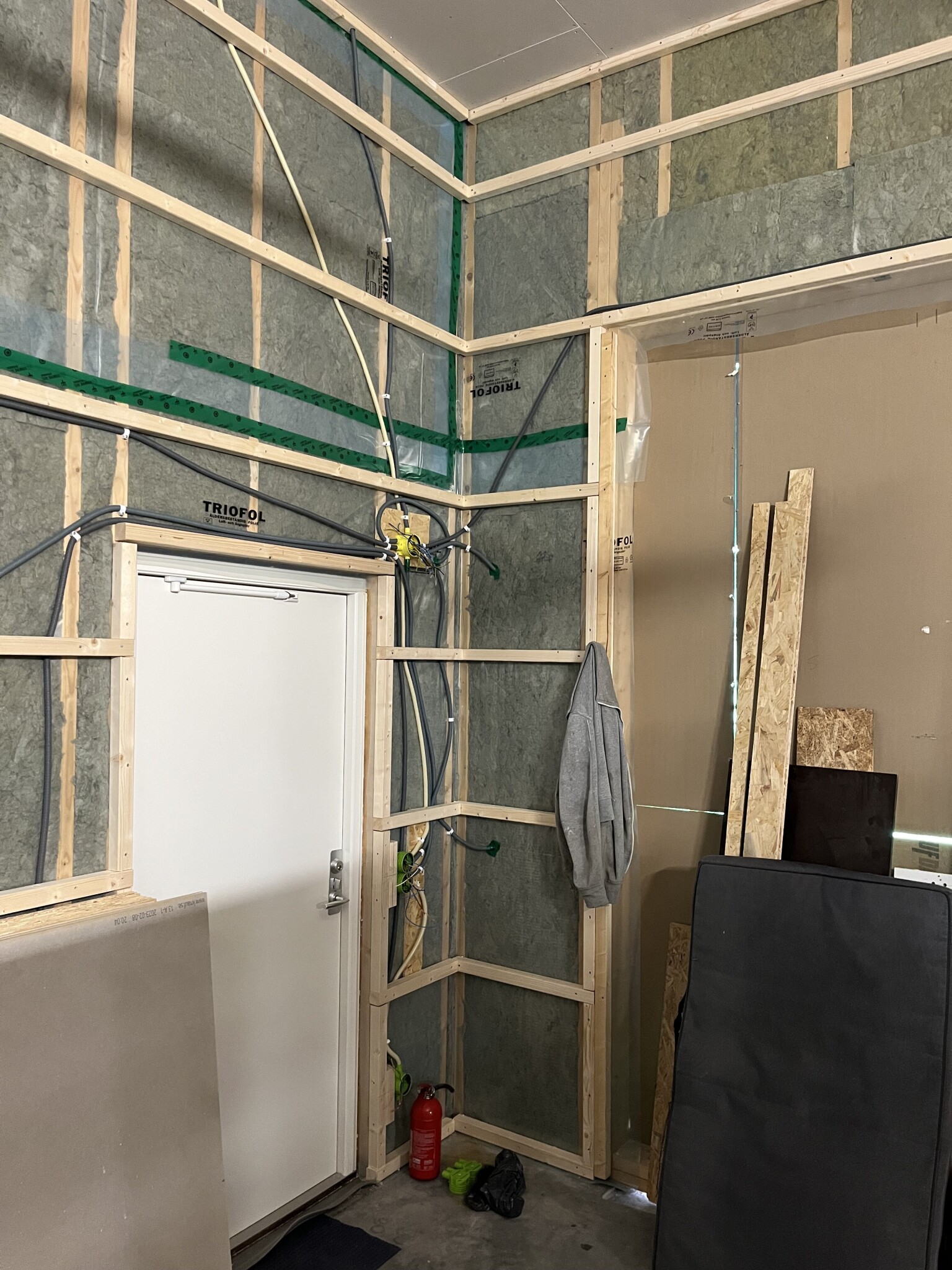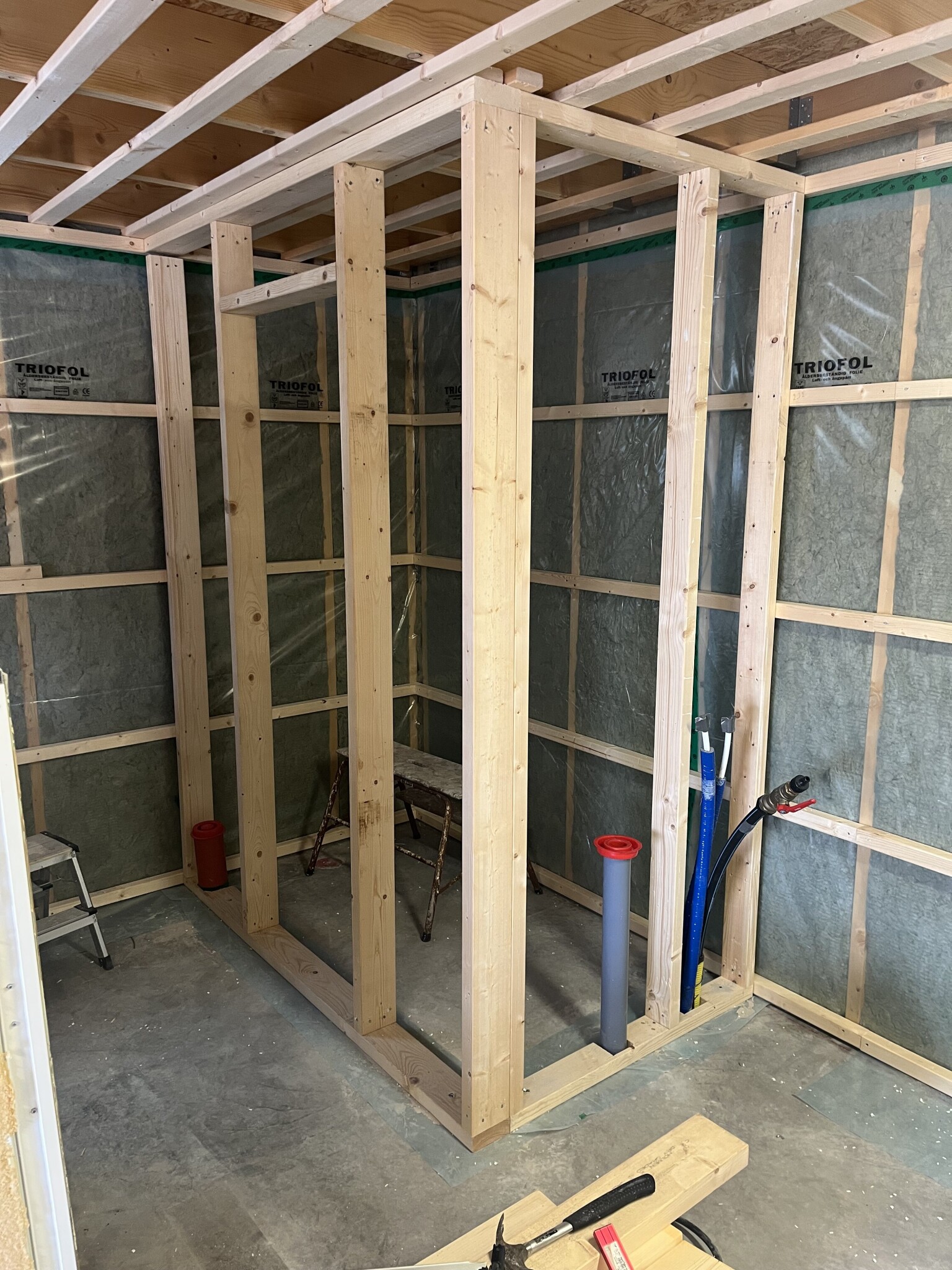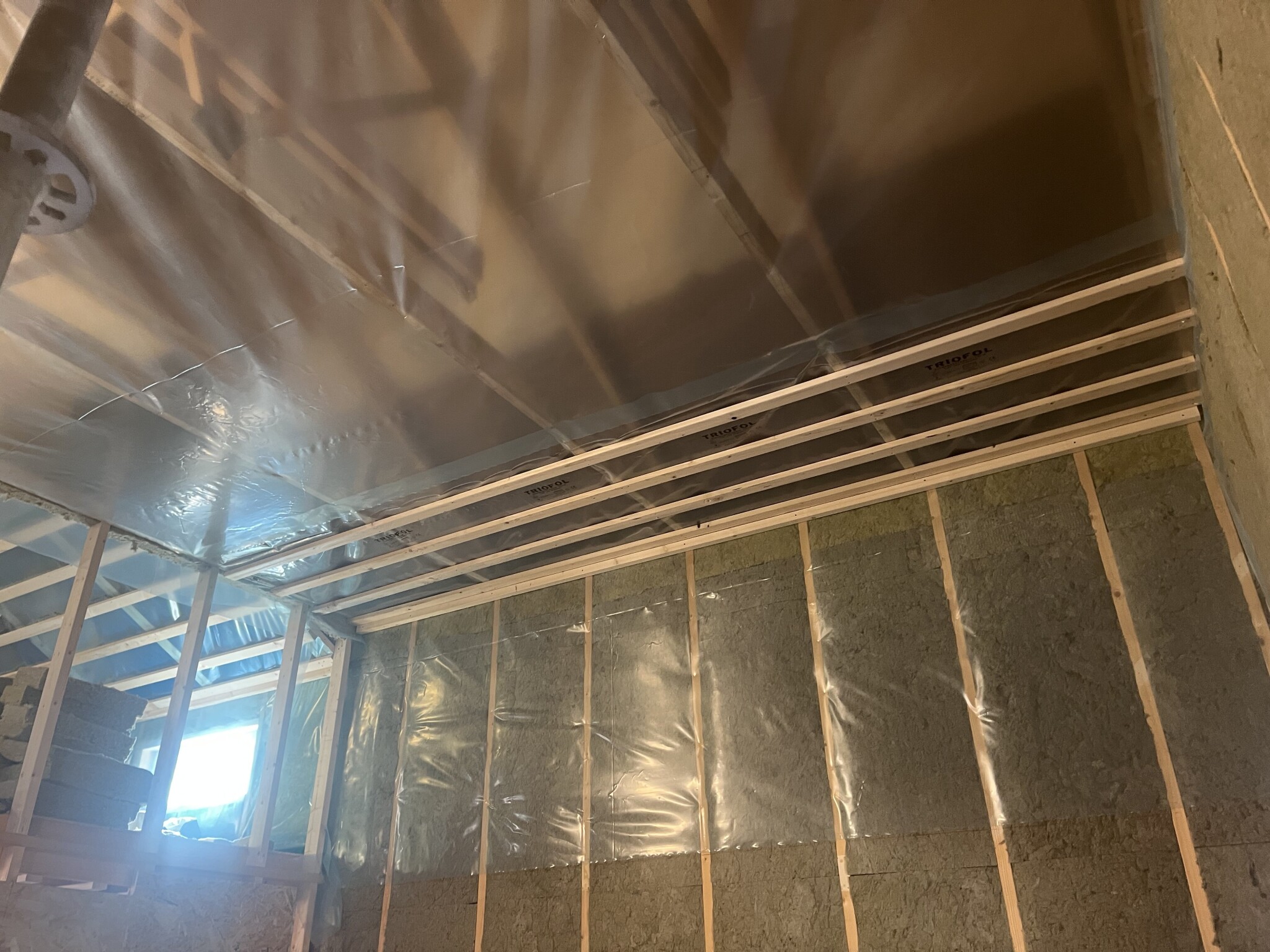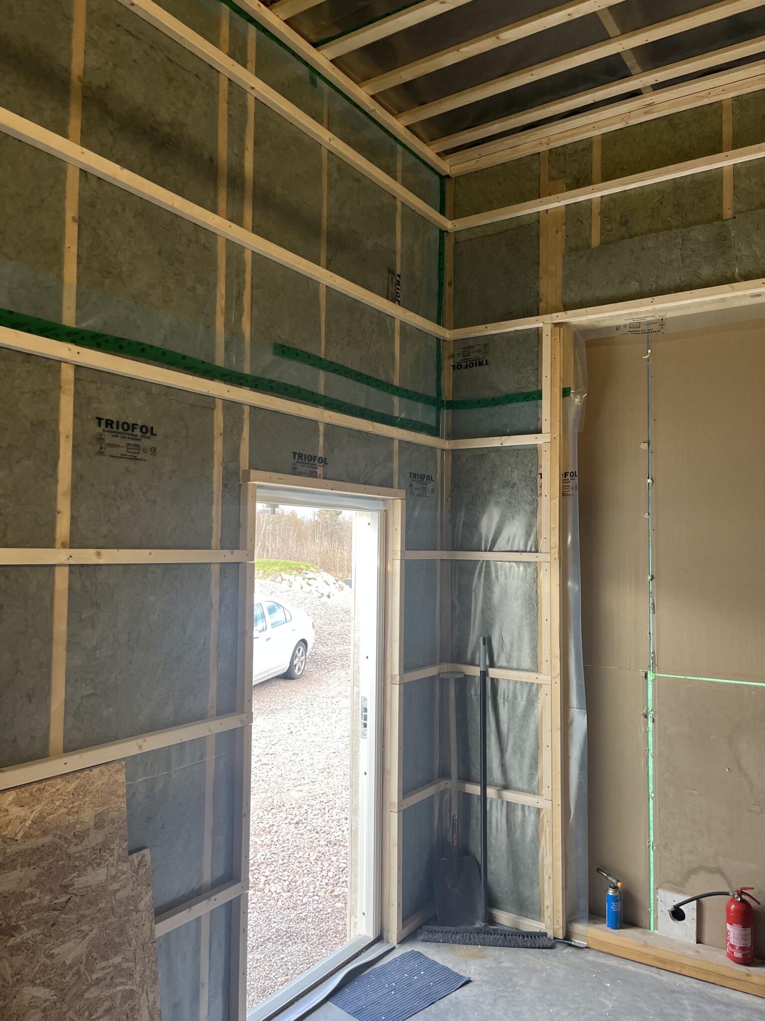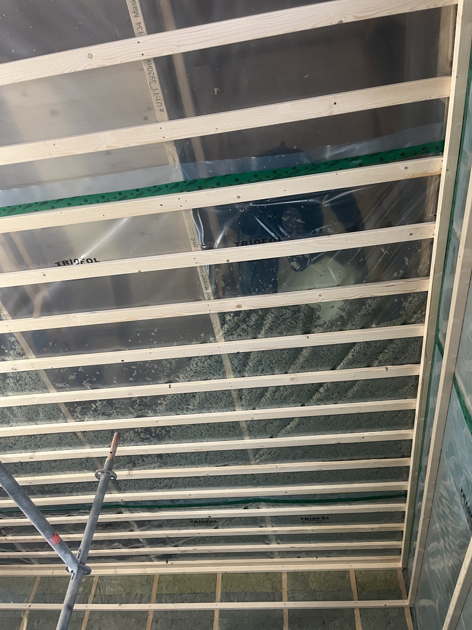Har fått isolerat samtliga väggar och fått upp plast samt 2”2. Även lösullen i taken är på plats.🙂
