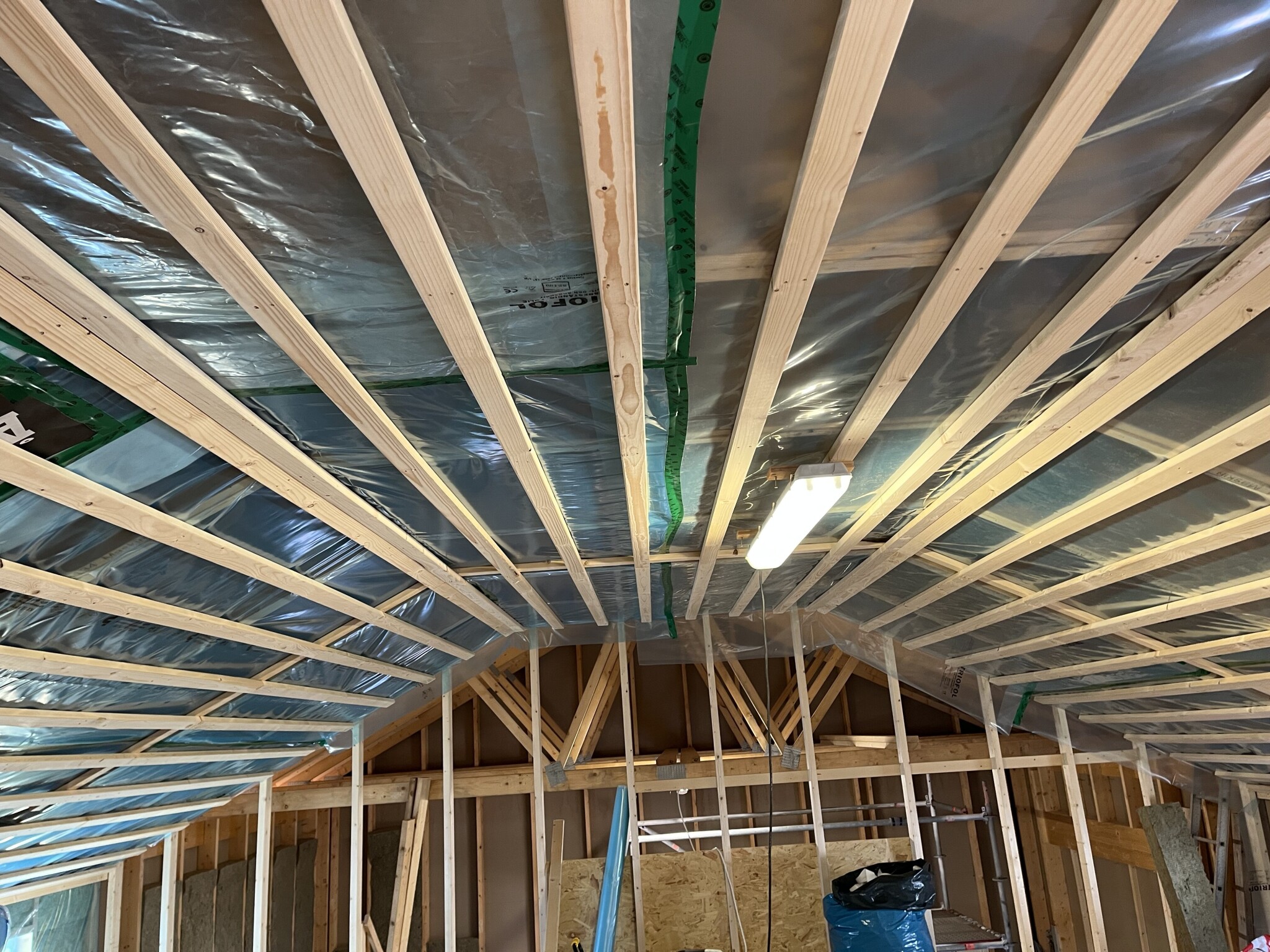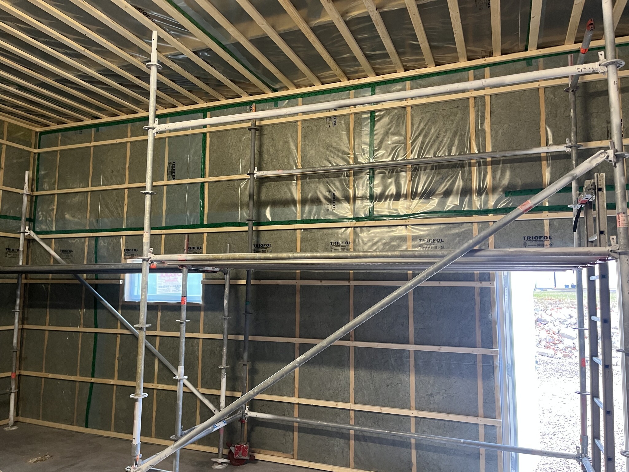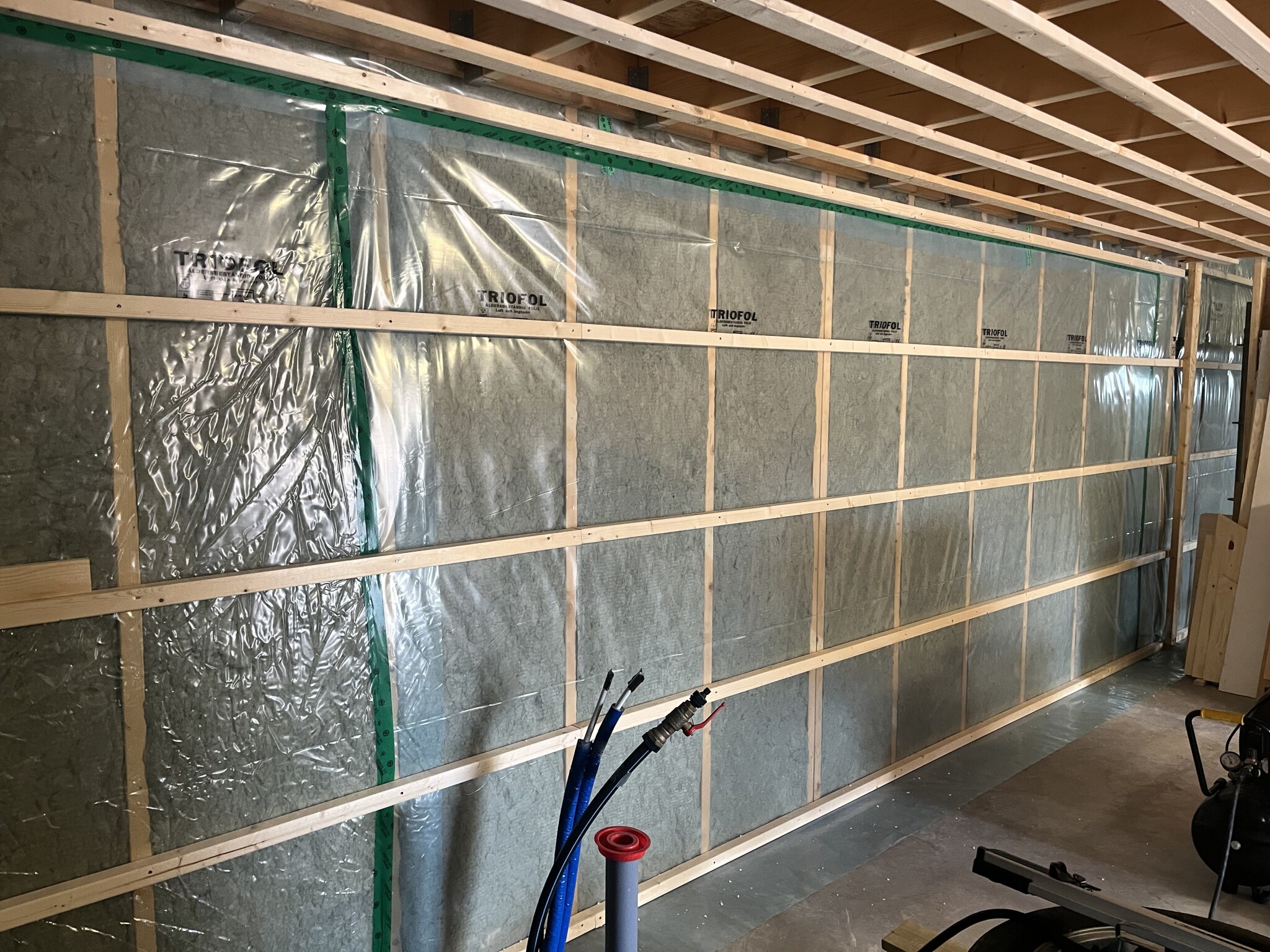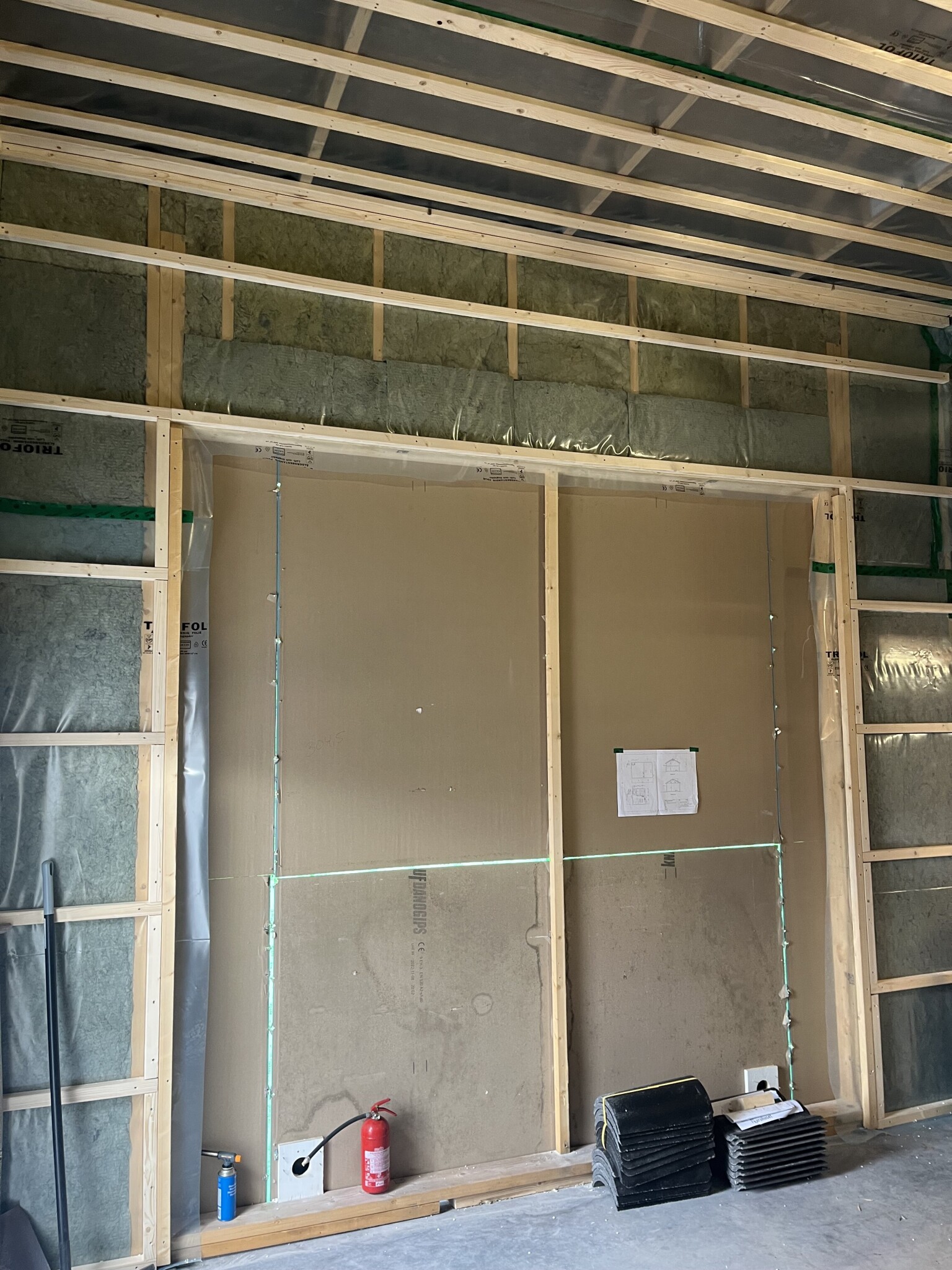 Har fått isolerat samtliga väggar och fått upp plast samt 2”2. Även lösullen i taken är på plats.🙂