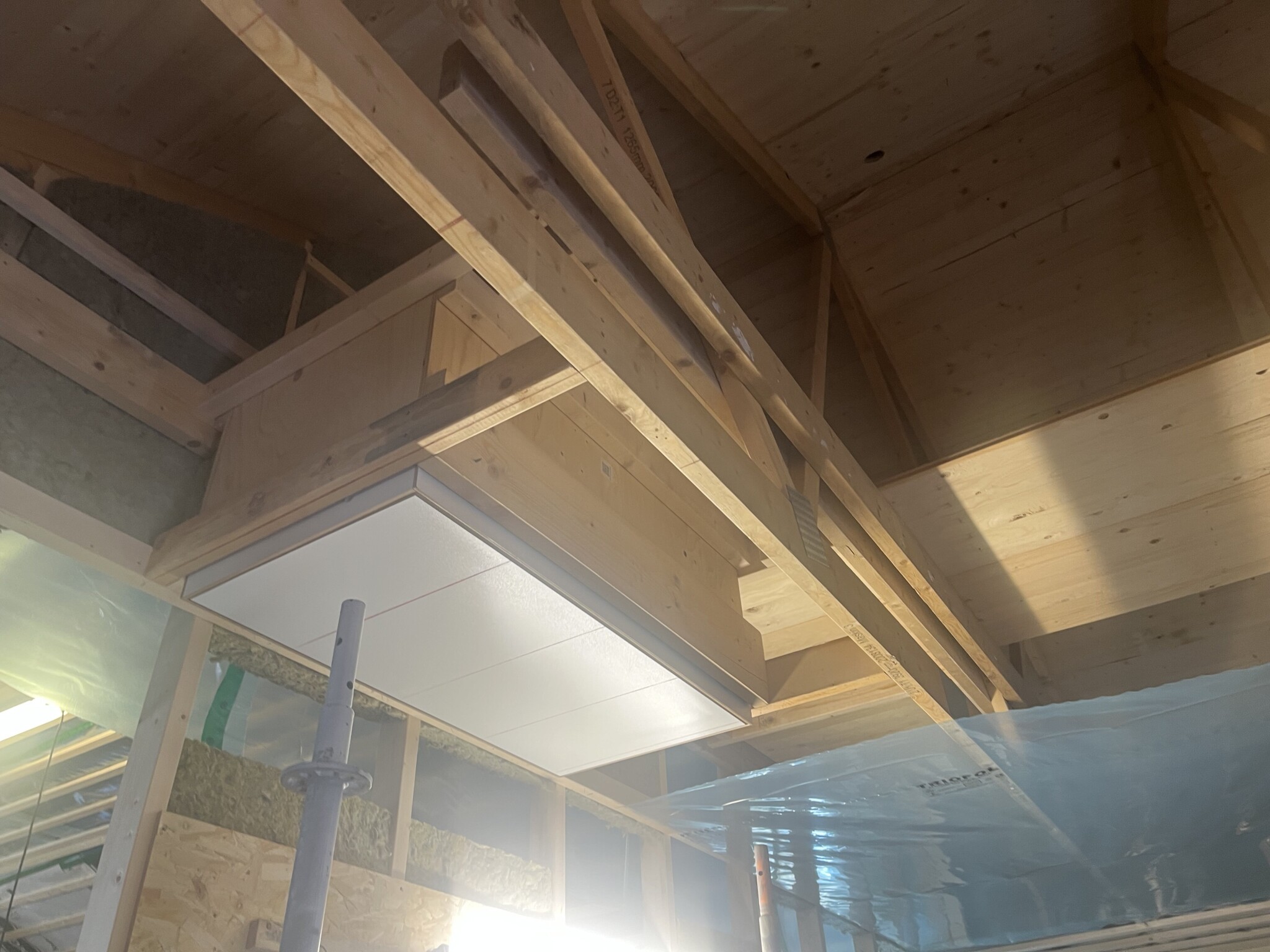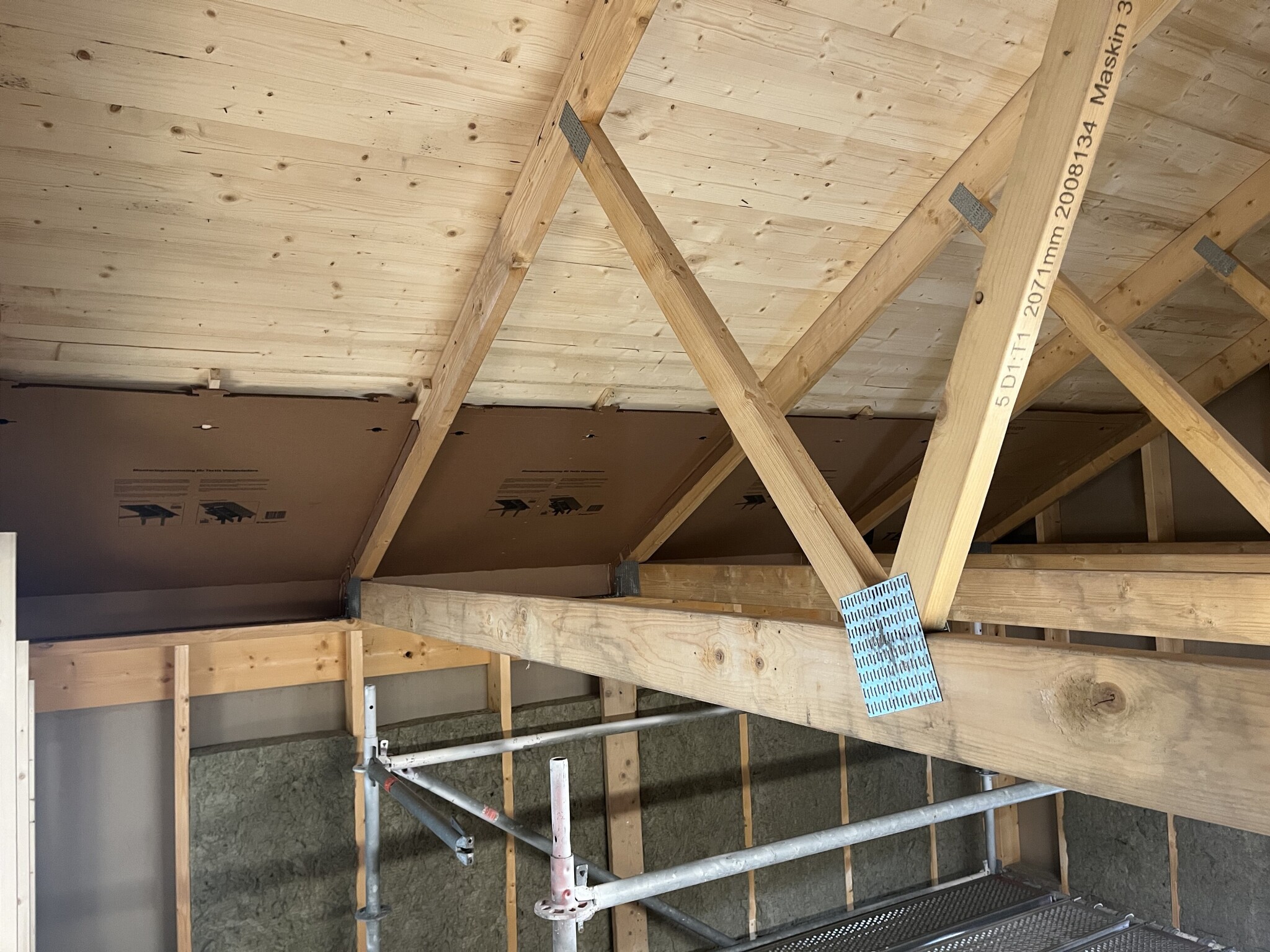 Även högdelen i garaget har fått luftning samt plats och gles i taket. Valde att sätta in en vanlig vindslucka och bygga lite golv där uppe ifall men vill förvara något.