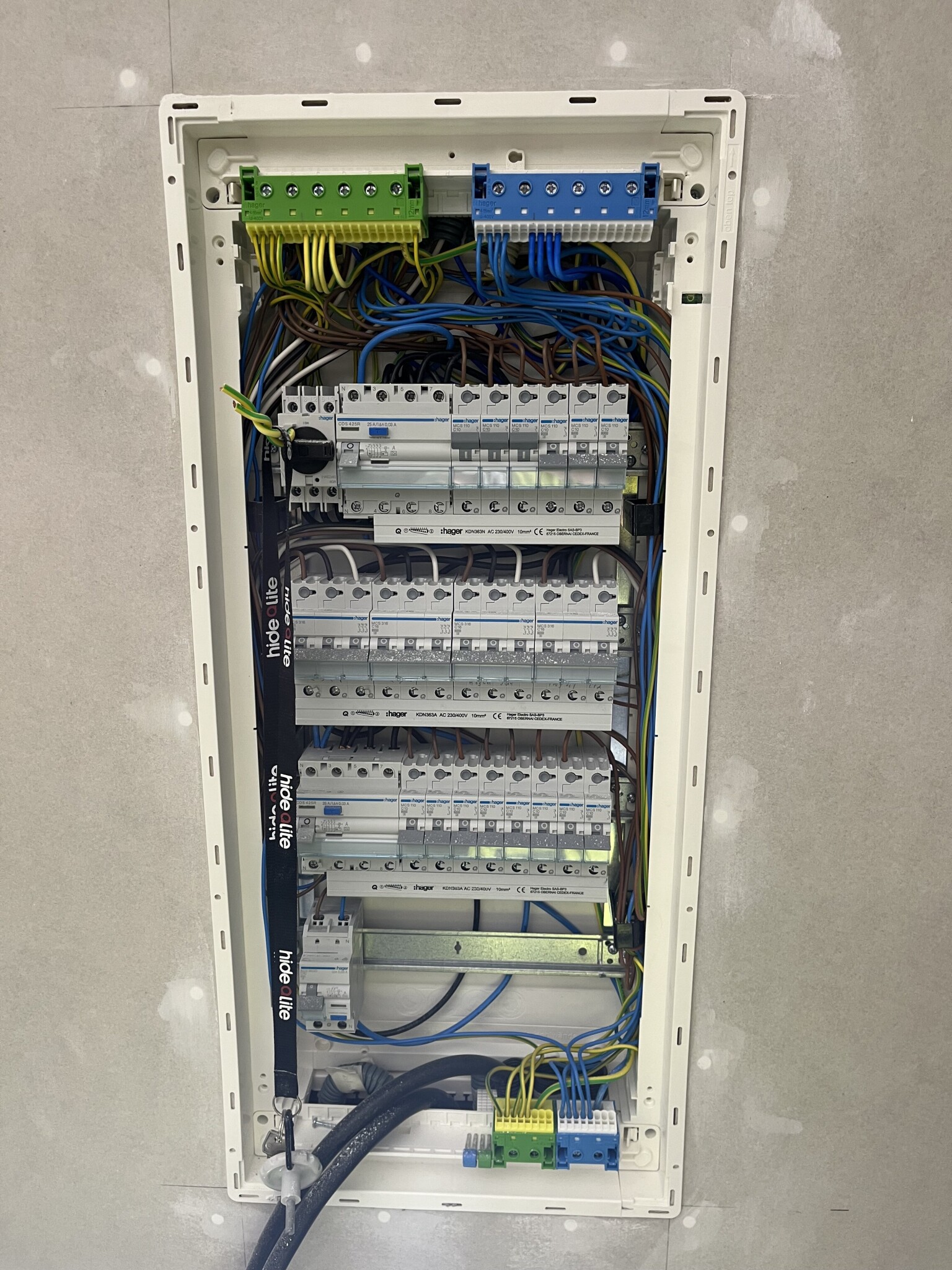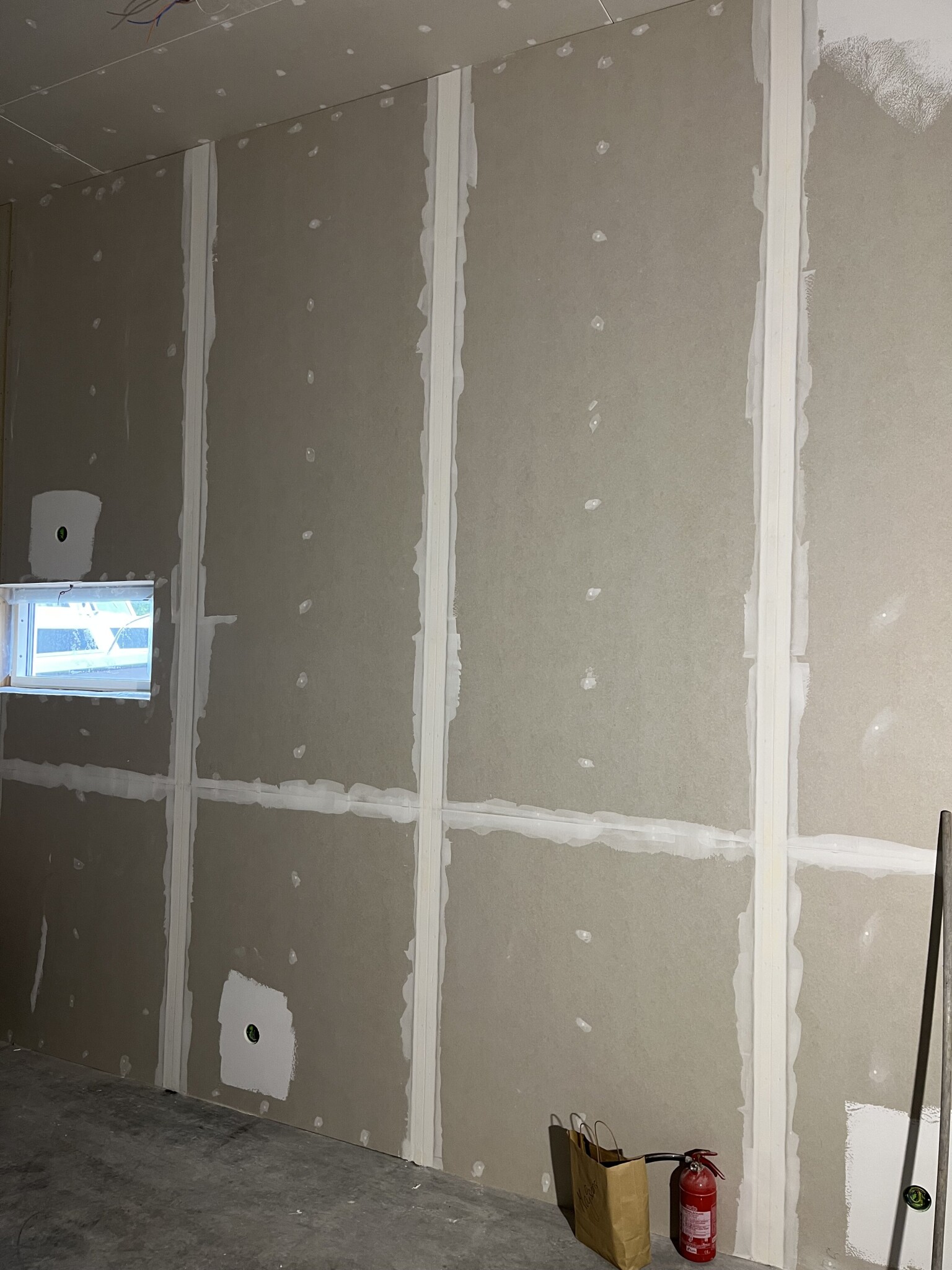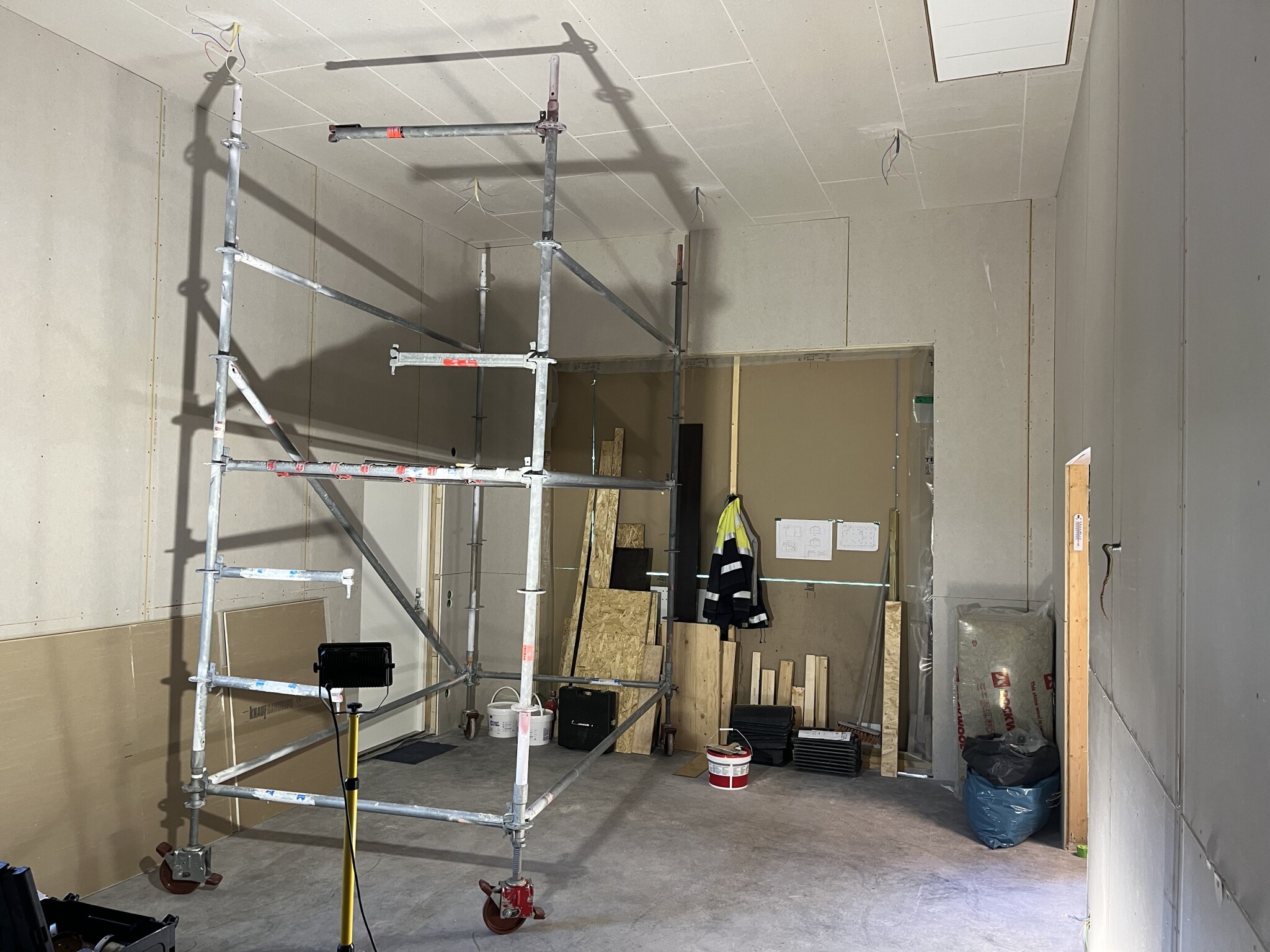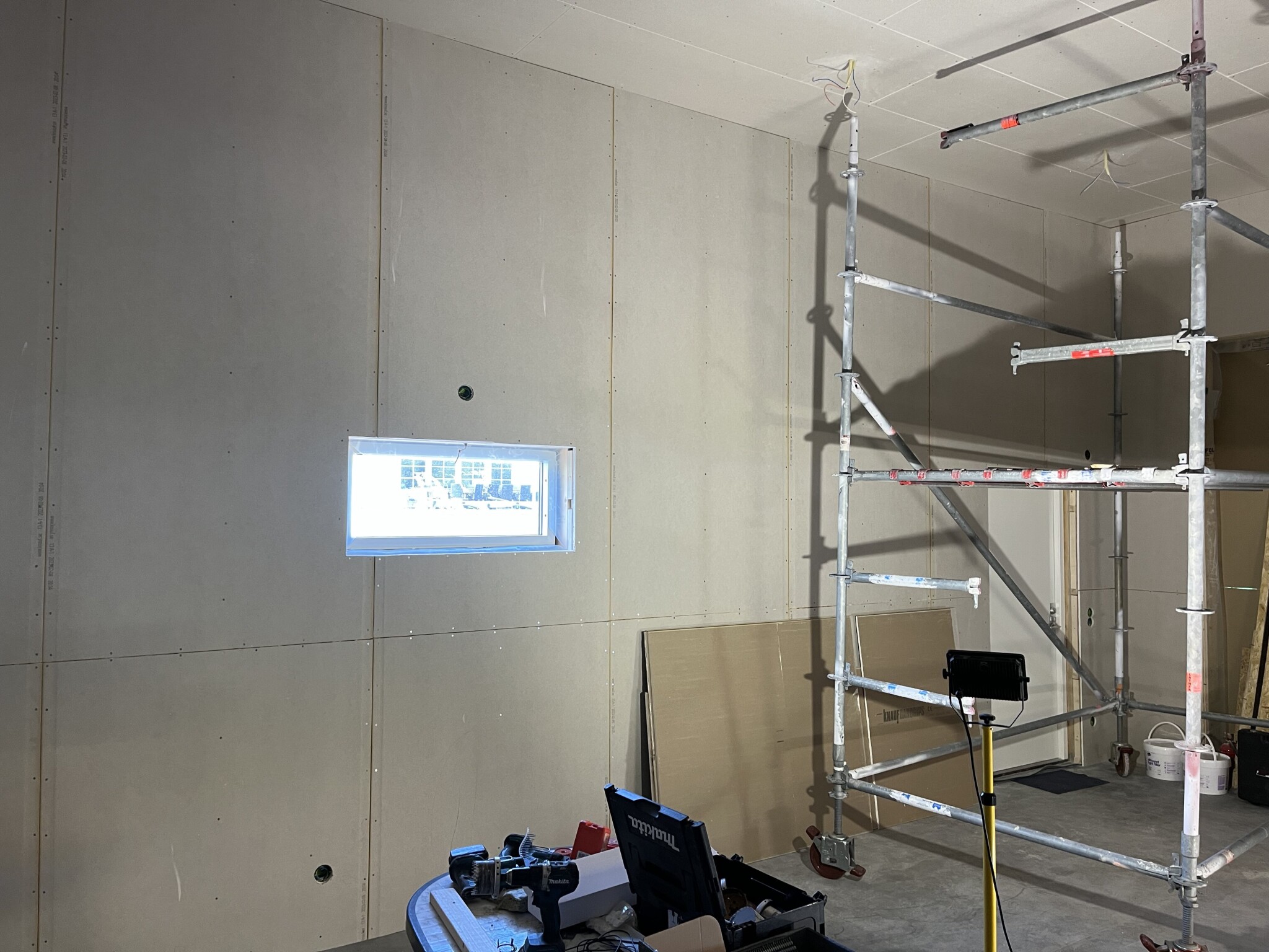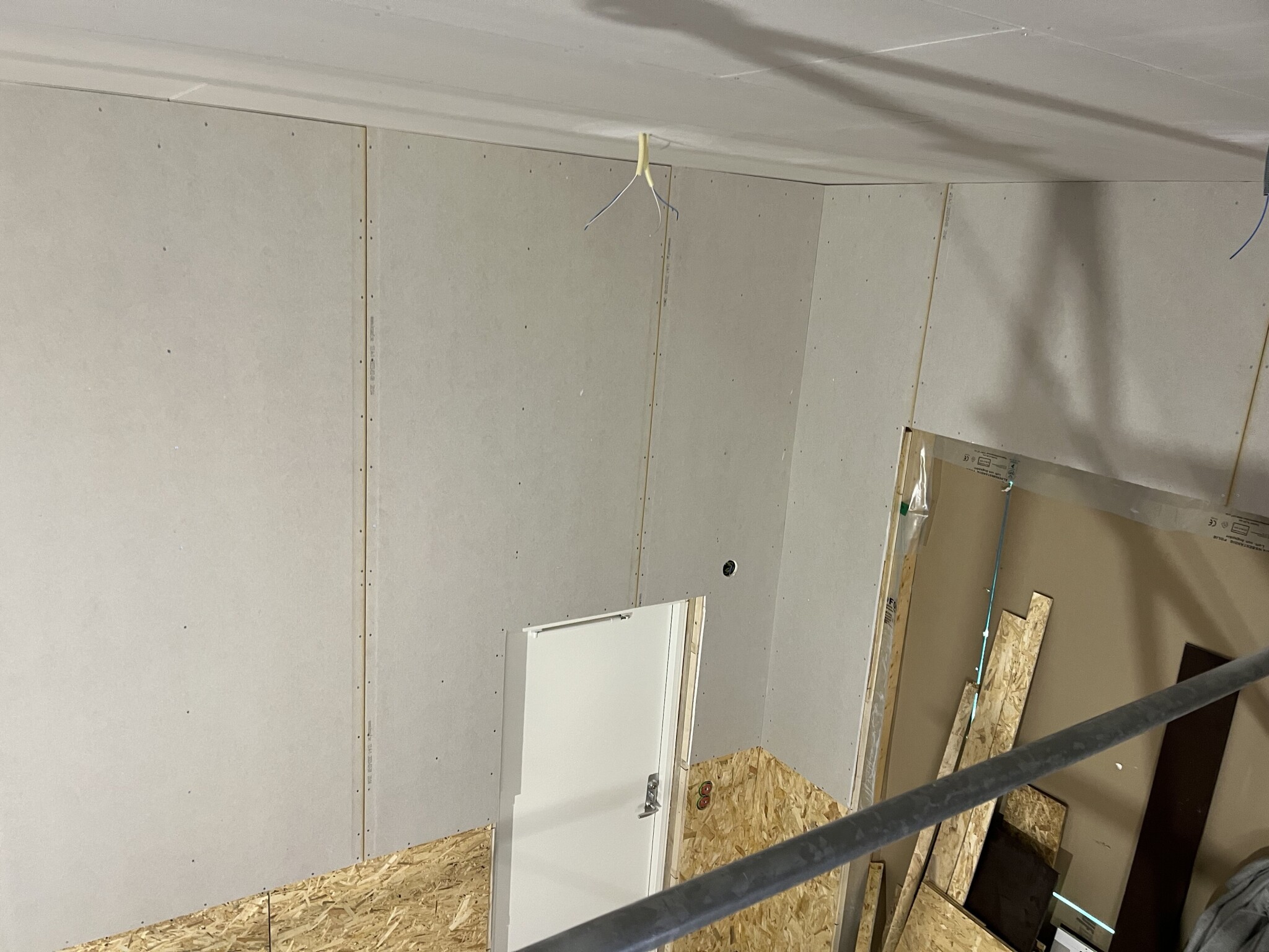Har fortsatt med gips i lågdelen, elektrikern har varit här och monterat centralen. Nu är det spackling och målning på schemat.