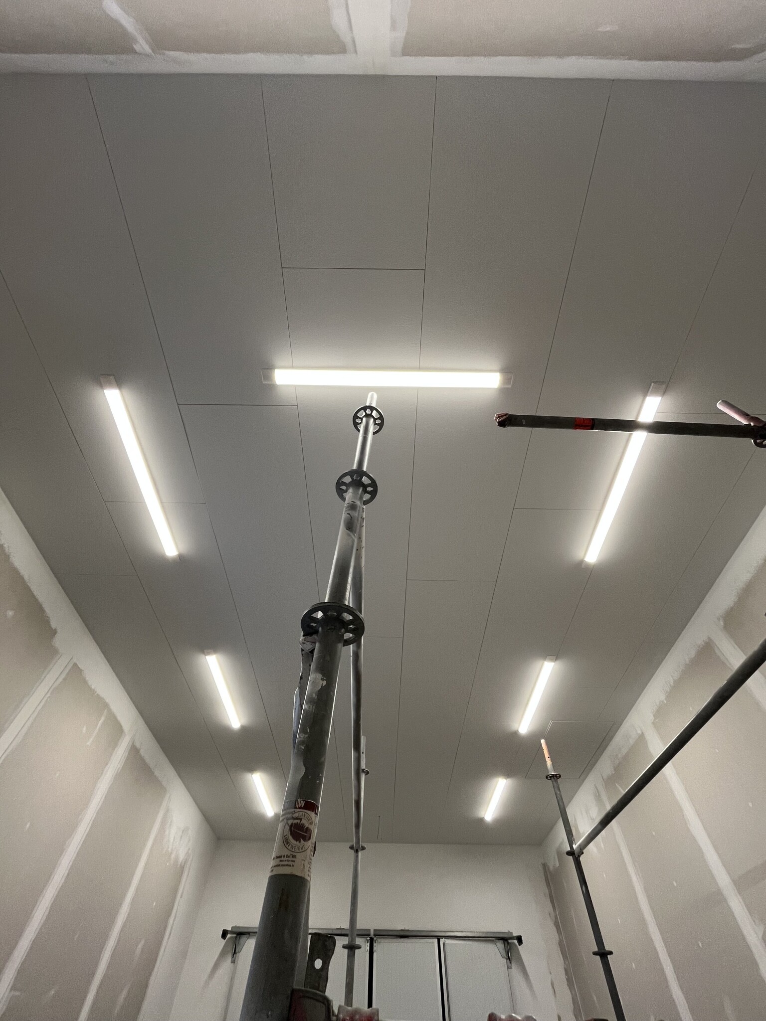 Spackling och målning fortsätter, prioriterat taken samt runt porthålen först. Men övriga väggar är snart redo för målning👍 Även fått upp belysning i taken och var ju tvungen att testa.🙂