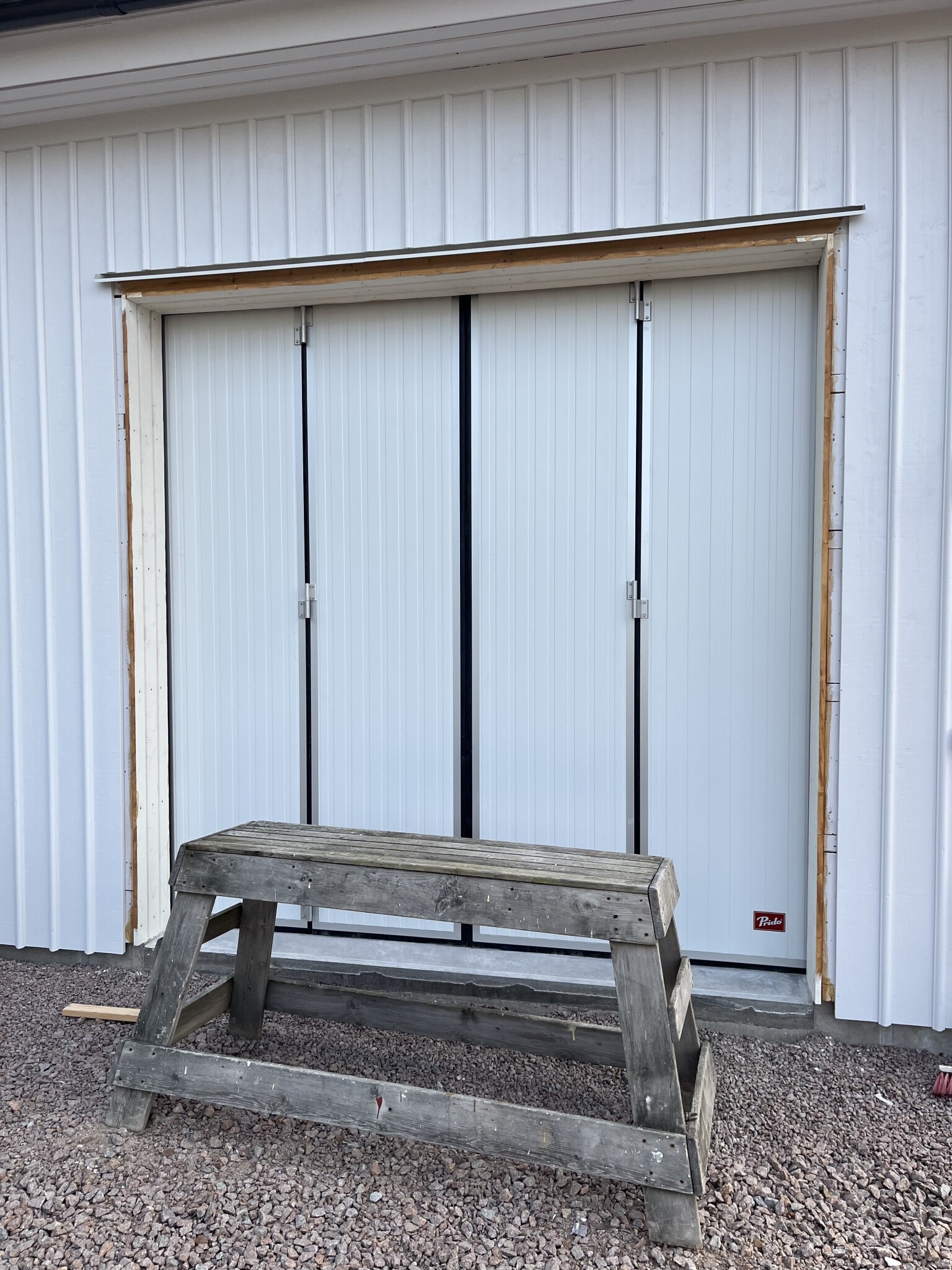 Efter att portarna var monterade var det dags för lite snickeri, portinklädnad och foder.🙂