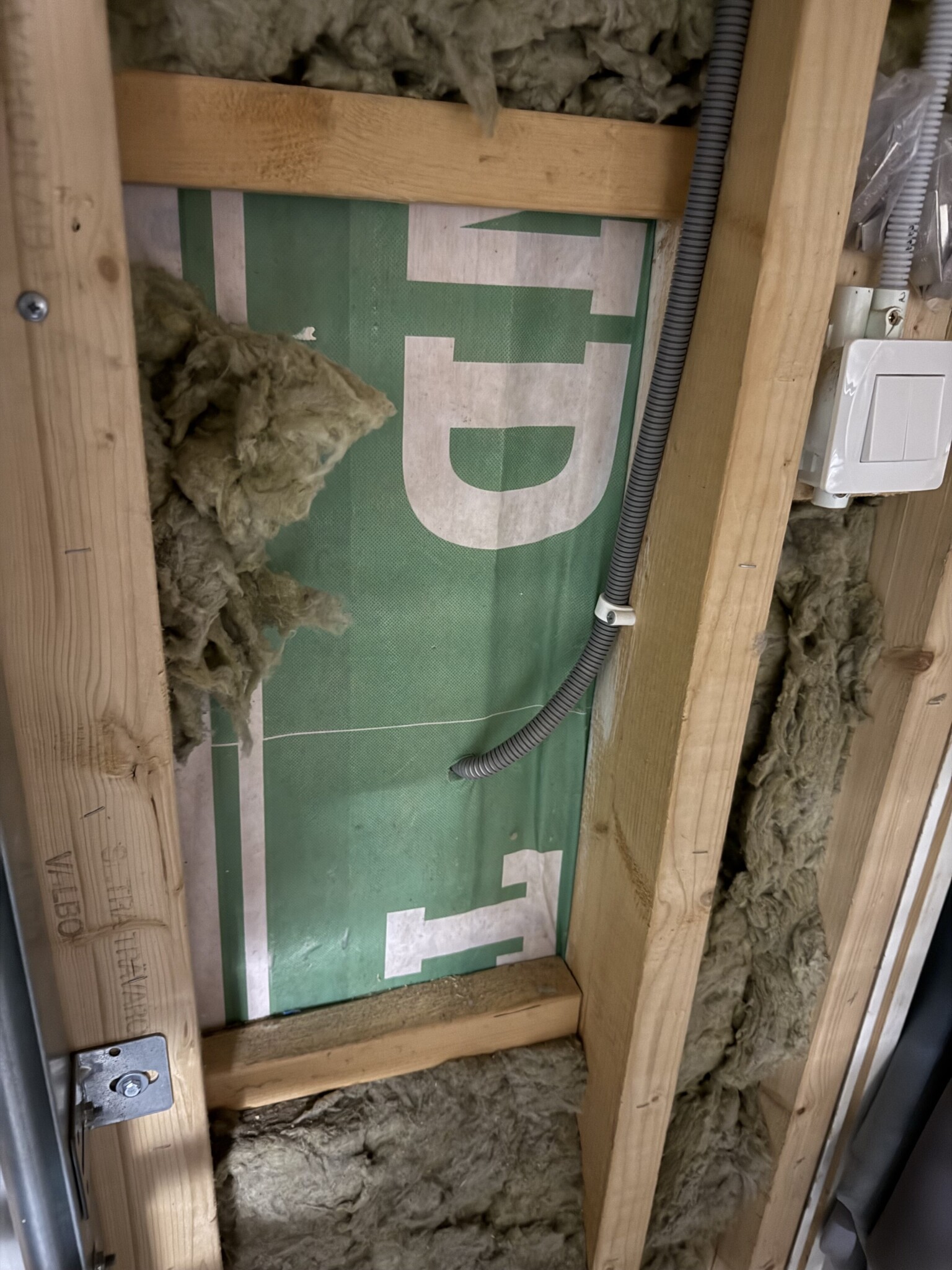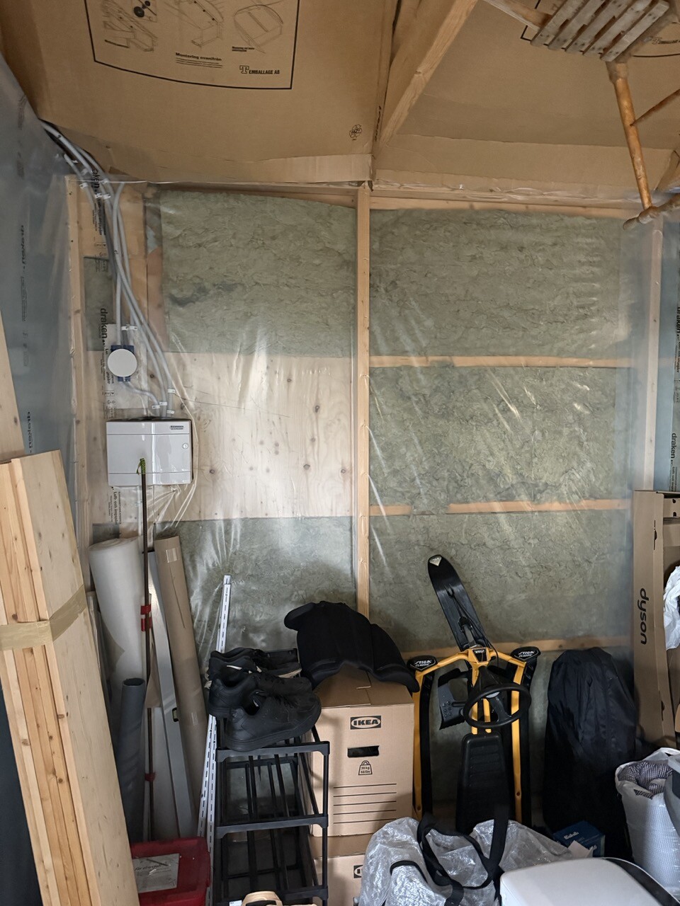 Jag tänkte börja med att lägga 95mm isolering direkt mot vindpappen för att sedan sätta en diffusionsspärr med plast.