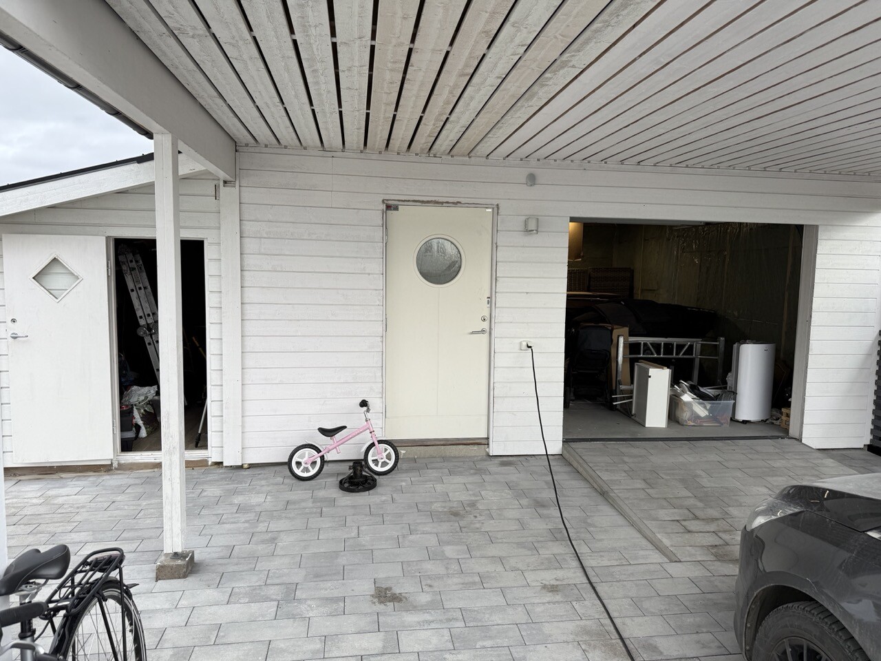 På ena sidan av garaget finns det ett utehus vägg i vägg.