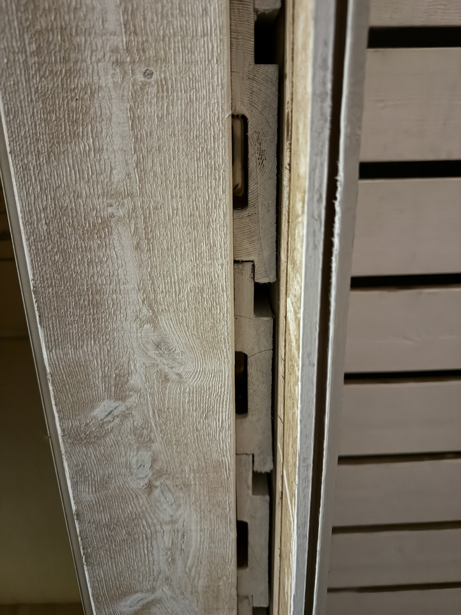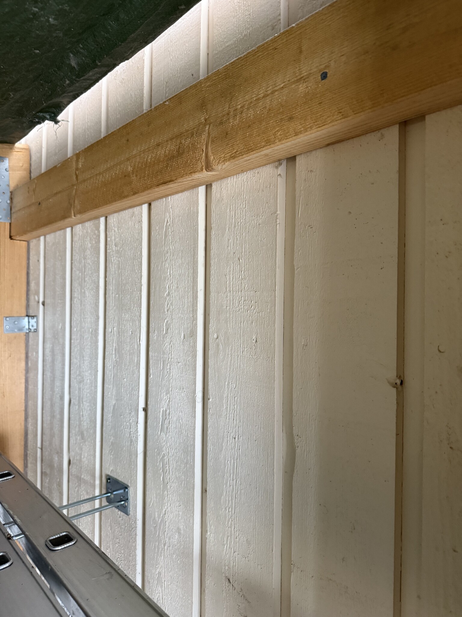Även om jag ser det som osannolikt så får vi anta att förra ägaren satt en liggande panel ovanpå en stående. Det finns helt enkelt ingen läkt och ingen luftspalt bakom panelen.