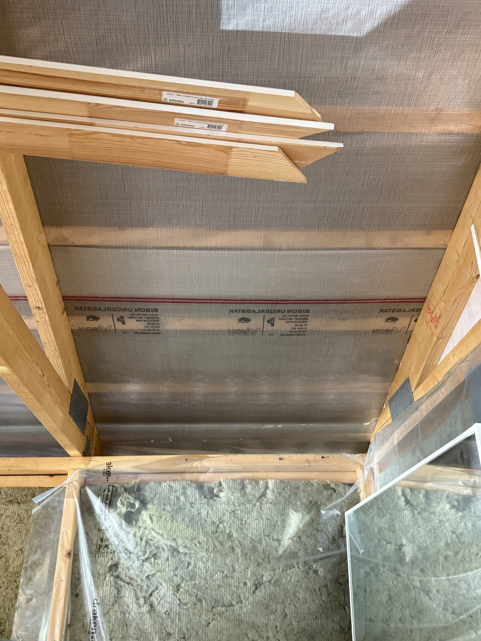 En sak som jag direkt ser som en nackdel är att det ligger Bison Underlagstak just nu.. Och denna ska väl istället ligga innanför isoleringen om sådan finns?
