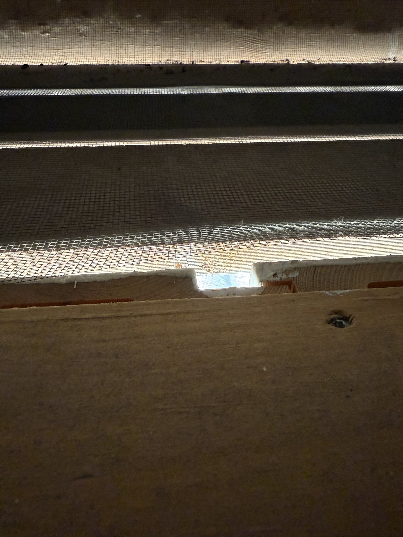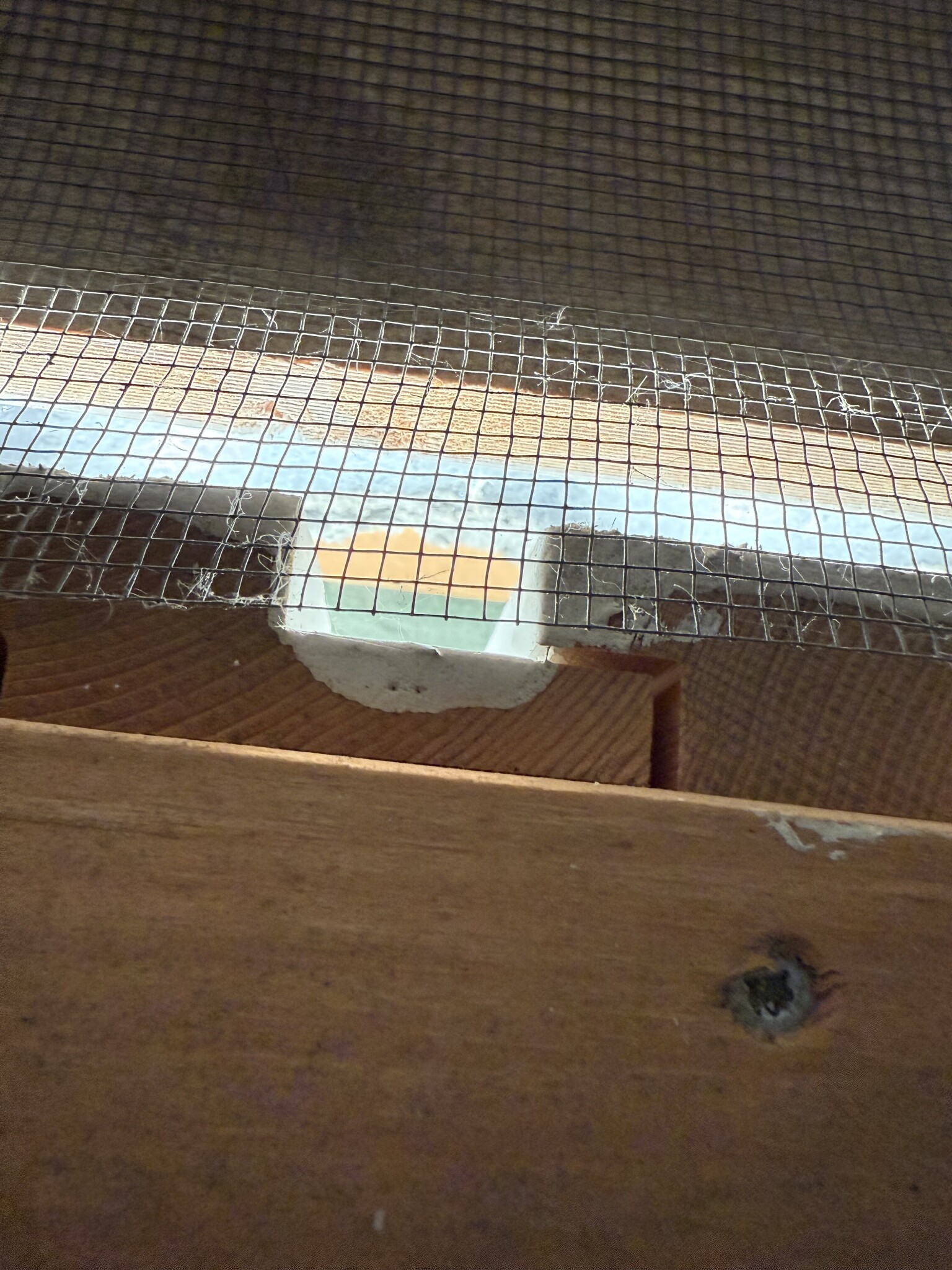 Upptäckte att insektsnätet vid takfot en var slarvigt monterad. Så det kommer jag att göra iordning.