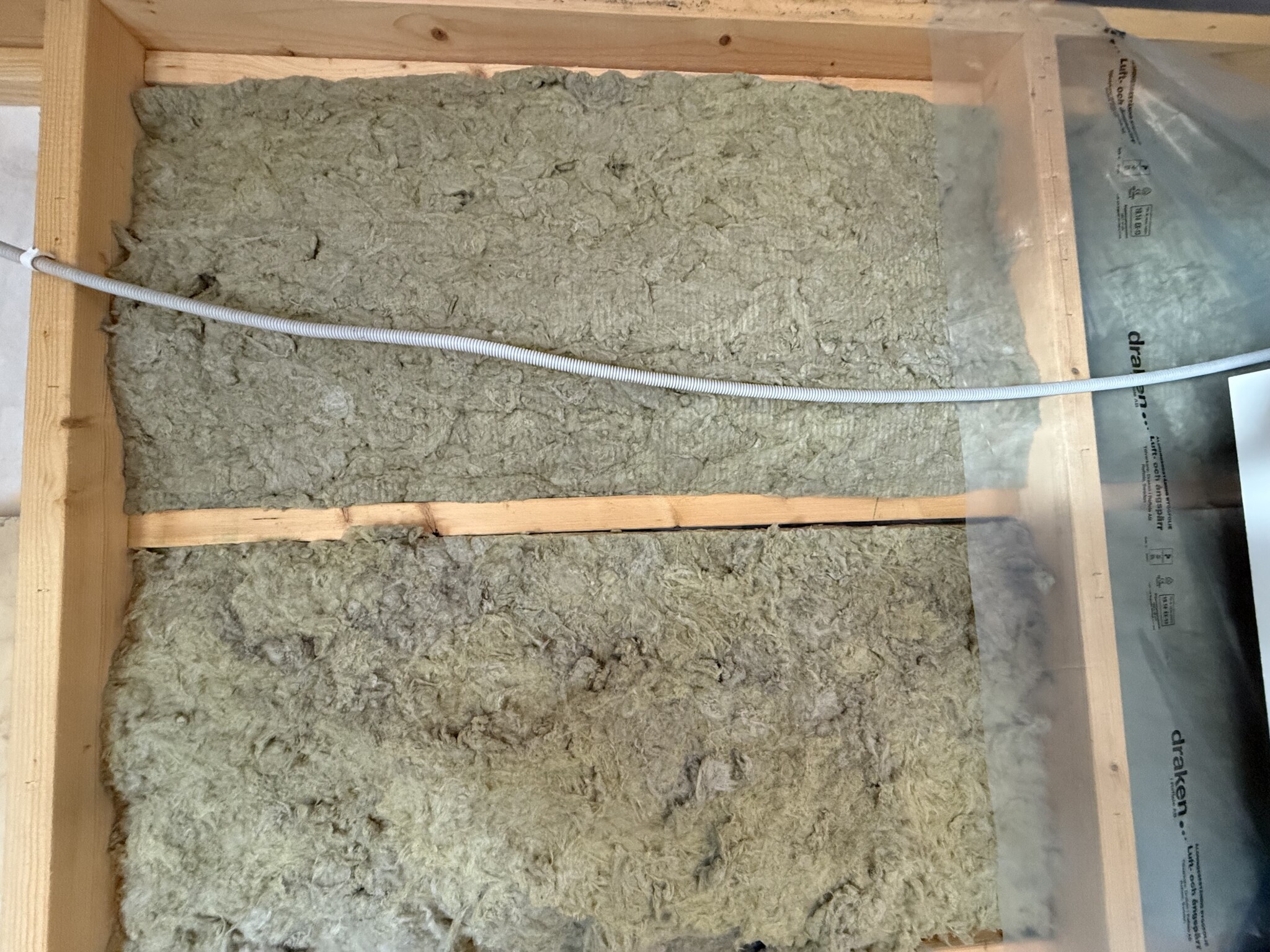 Det är satt dubbla lager med 45mm isolering i ett 120mm fack.