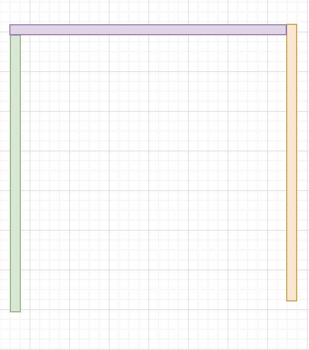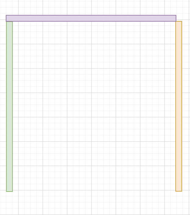 Om vi börjar i hörnen, ska väggarna mötas kant i kant (lila/orange enligt nedan bild)
