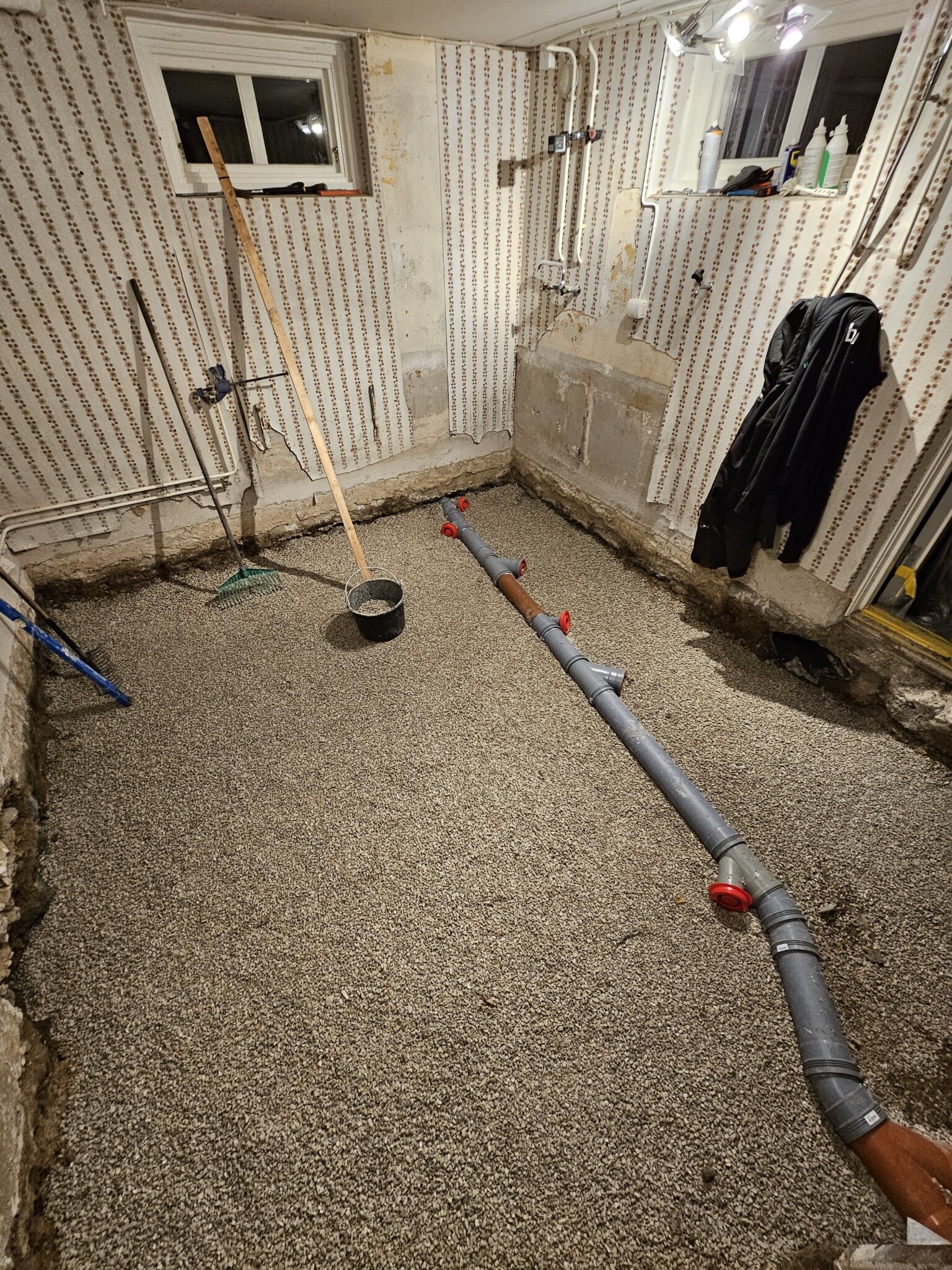 Nu är golvet urgrävt, avloppet är bytt mm. Min fråga är bara hur hade ni gjort med cellplasten? Isolera runt avloppet eller försöka skära ur cellplasten så att ovansidan fortfarande är slät? Lär dock bli väldigt tunt på vissa ställen då jag bara ska ha ett lager 100mm cellplast och avloppet är ju 110, även fast det ligger en liten bit under gruset.