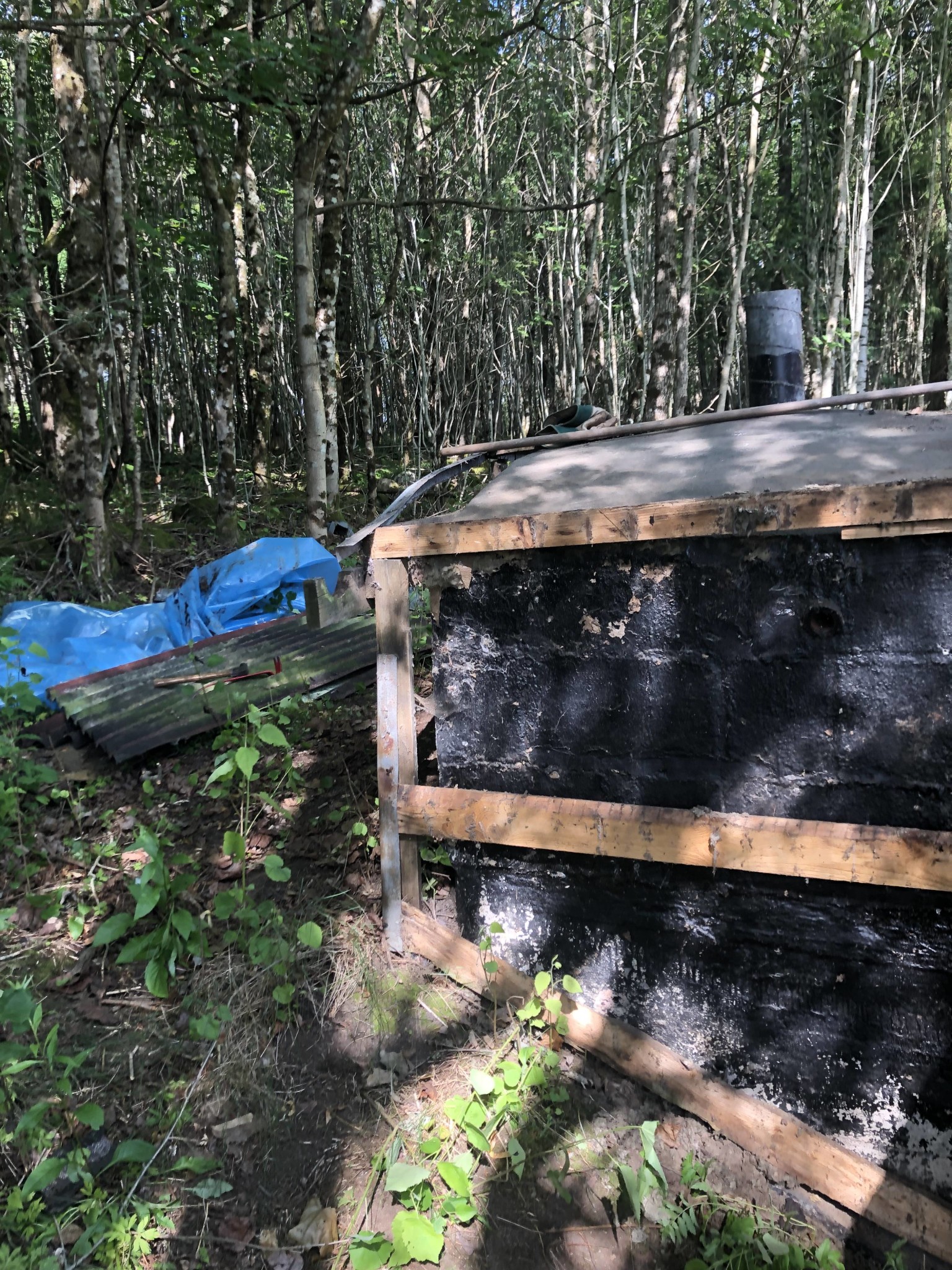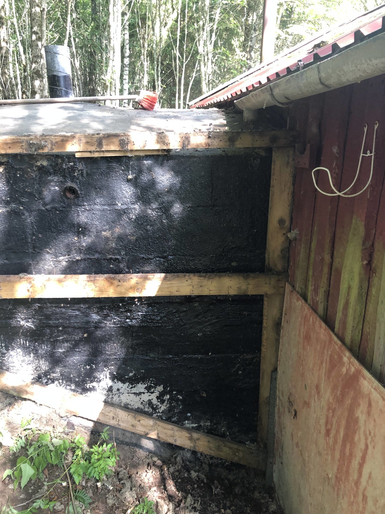 Vi har ett trixigt problem på landet - en gammal murad matkällare (60+ år gammal) som till hälften ligger under jord håller på att renoveras. Som Ni ser på bilderna så är den helt murad och täckt med kallasfalt som fuktskydd. Den skall täckas med både skyddstak och stående väggplåt så frågan gäller nu vad vi skall välja för isoleringsmaterial mellan muren och den stående väggplåten?