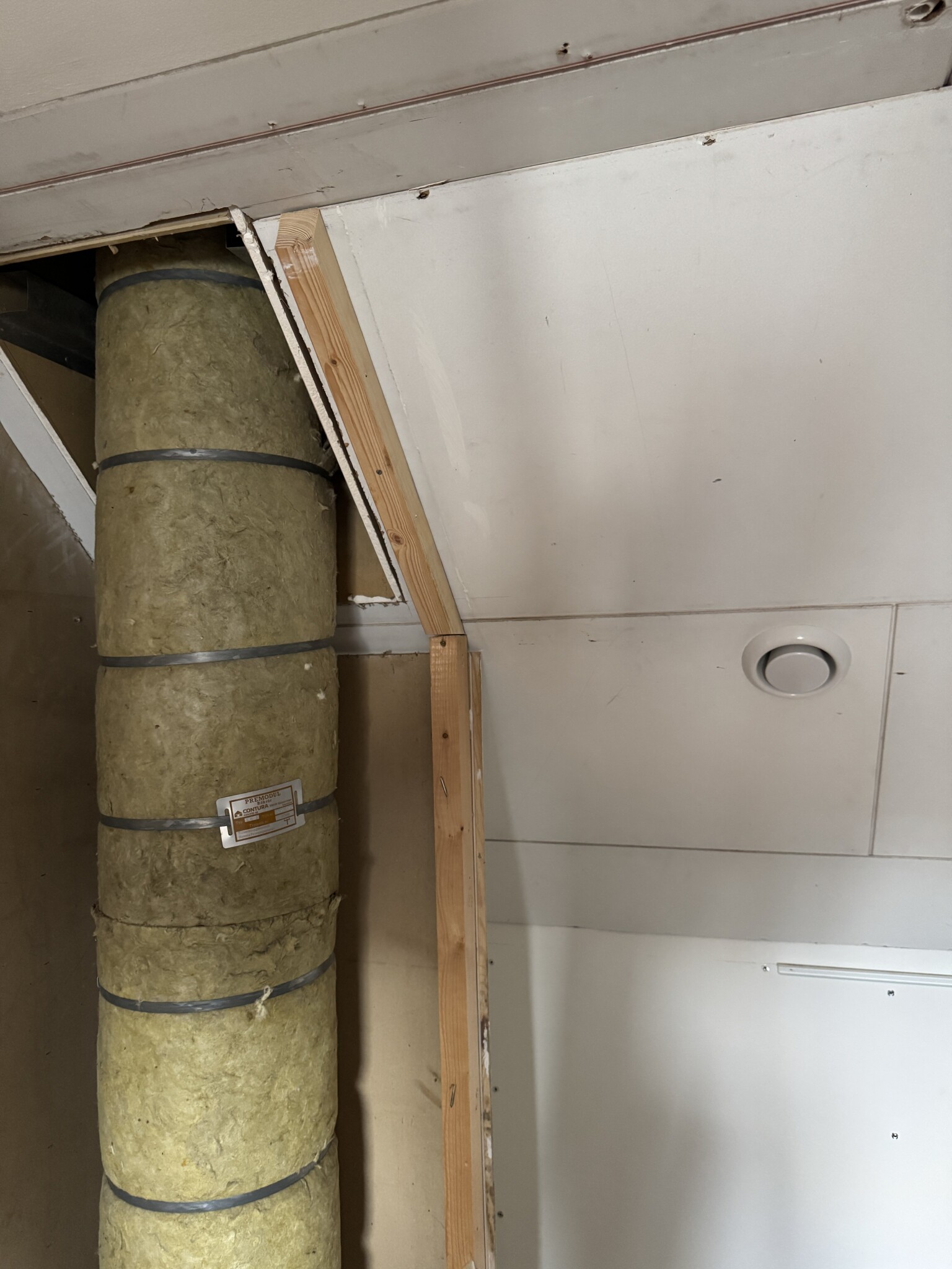 Har öppnat kanalen och undrar om man kan trycka in isolering runt röret vid genomföringen till vinden ur brandsäkerhetssynpunkt? Röret är ju redan isolerat med någon typ av isolering. Vilken typ av isolering ska man ha i så fall?