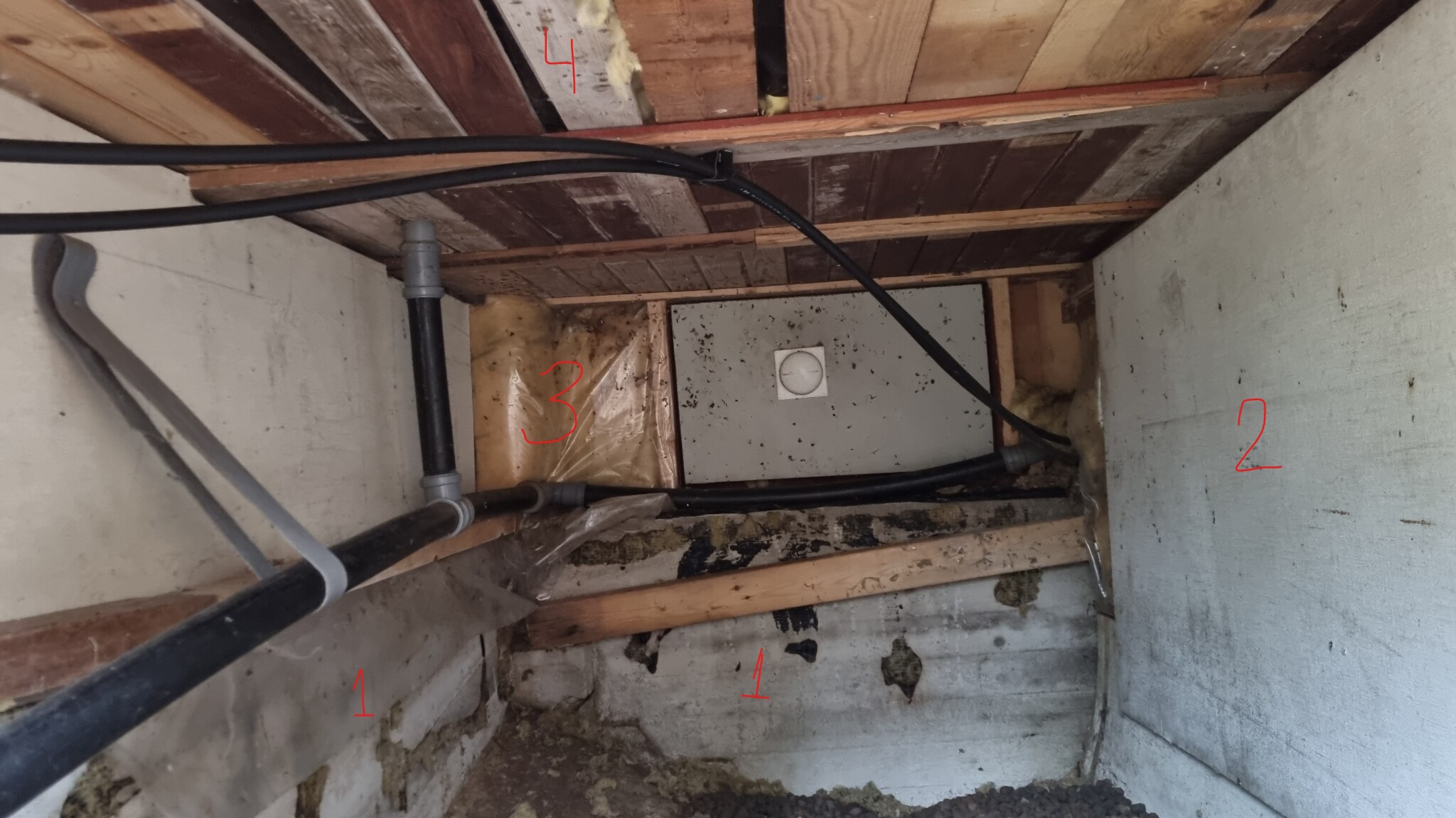 - På bilden (3) är det inplastad isolering runt en betongstolpe. Varför isolerar man där? Borde jag ta bort den isoleringen för att minska risken för fukt och mögel?