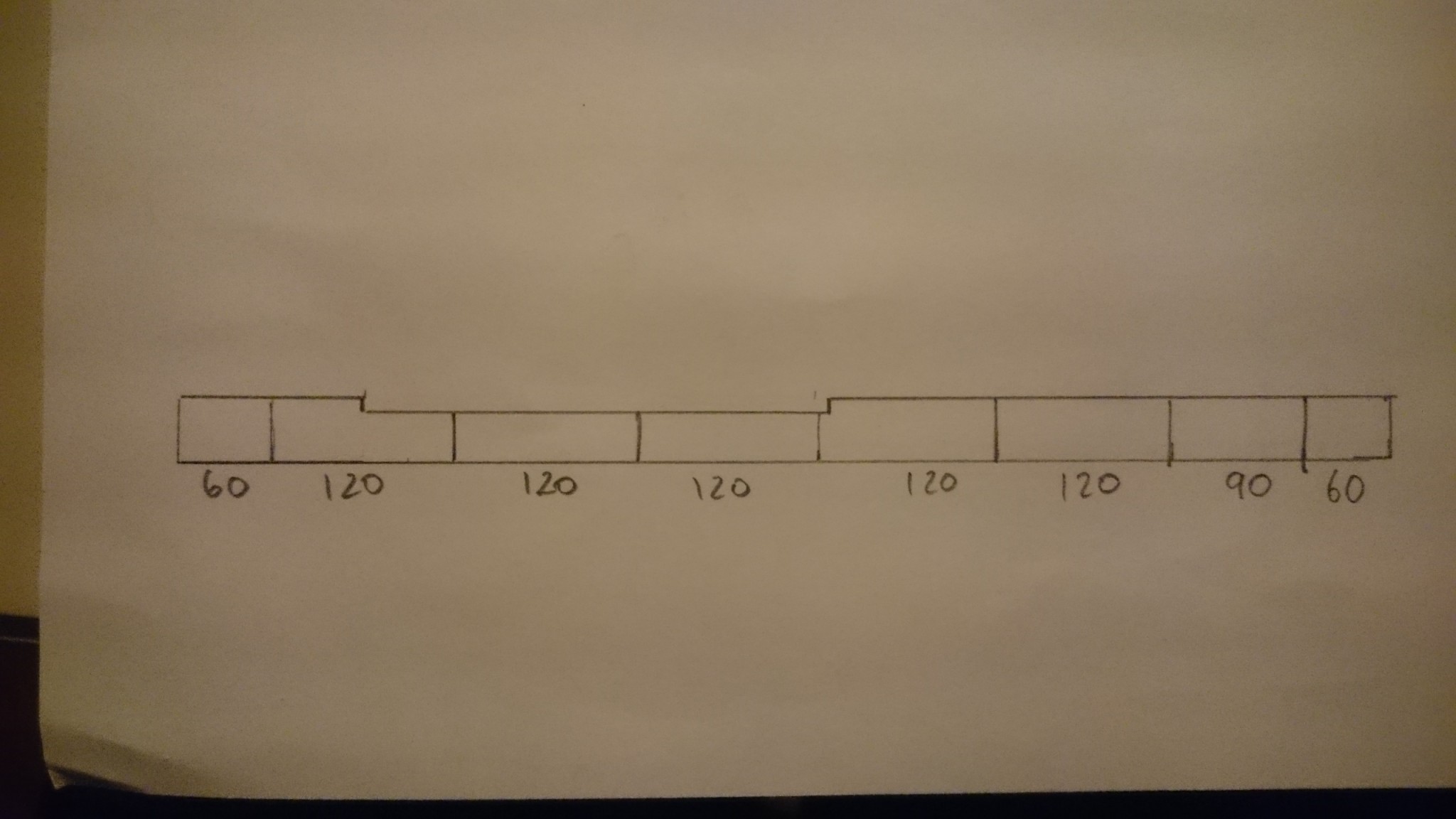 Jag hade nog gjort som dom (om jag inte hade en överenskommelse med kunden) fast med den skillnaden att jag hade satt kapbiten (den som är 90 cm) som nummer två från vänster. Då hade den avvikande biten hamnat under tröskeln och aldrig synts.