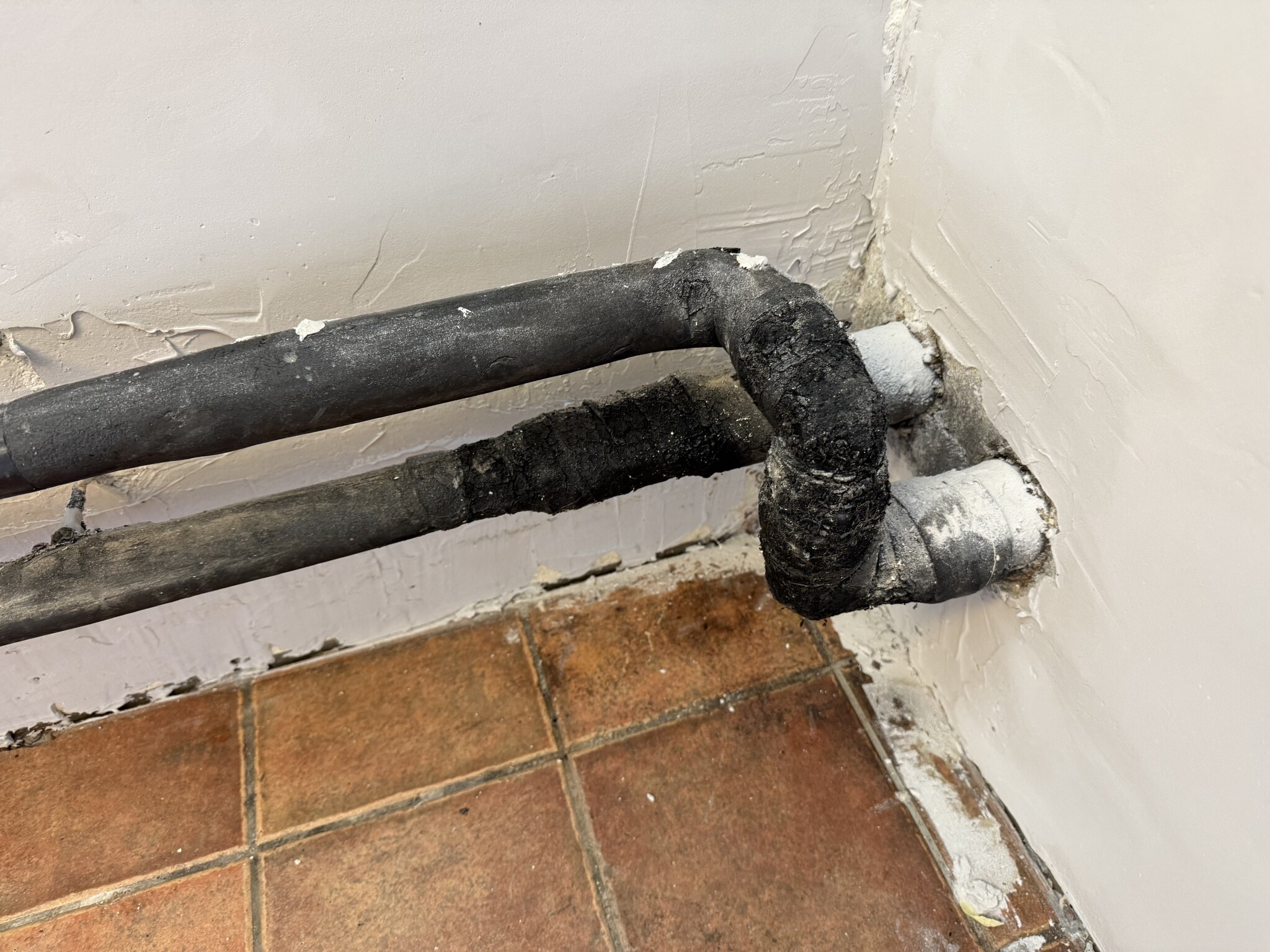 Lånar tråden lite då jag har samma utmaning. Mina rör går ut genom väggen på sutterängplan. Att isolera genomföringen av väggen känns inte görbart. På utsidan går det självklart men hur djupt behöver det gå? Ner till frostfritt djup eller? Rören på utsidan var täckt av hemmabyggd frigolitisolerad låda som jag nu håller på och ska bygga om. Därav blottade för. På rören på insidan är det lite väggputs efter nyligen gjord putsning/slipning.J jonaserik skrev:För att få det bra utan kondens, ska armaflexen vara hel innifrån ( ca 10 centimeter ) och gå ut på utsidan ca 1,5 meter. Det sista om det blir minusgrader på KB så ska inte det bli permais i marken intill grunden. ( det är inte alla borrare/rörisar som gör det på rätt sätt ) Viktigt är att allt hellimmas absolut i alla skarvar.