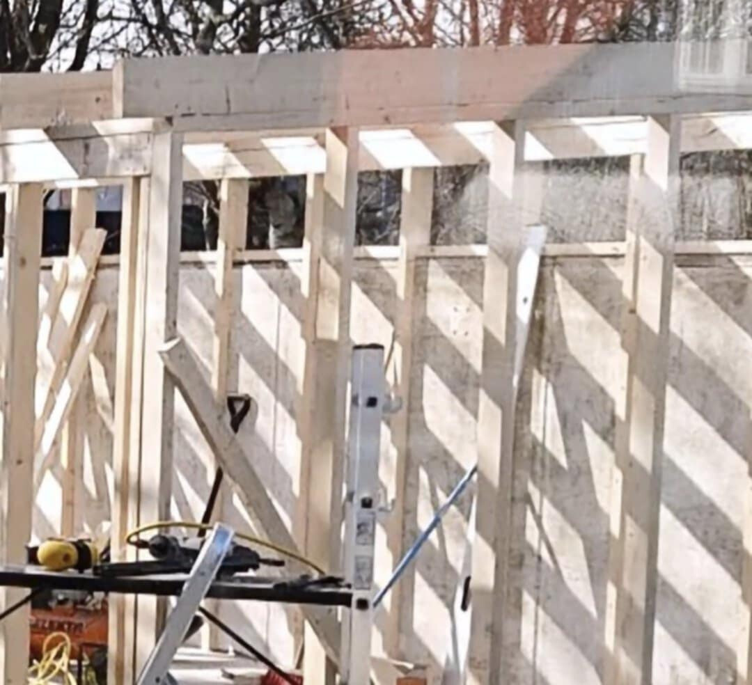 Här är först en bild fångad från en video, så kvaliteten är "sådär". Men den visar de urjackade reglarna och den nya liggande regeln ovanpå betongväggen. Allt med cellplastremsa mellan betong och trä för att försöka minska riskerna iaf.K Kurre23 skrev: