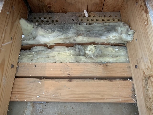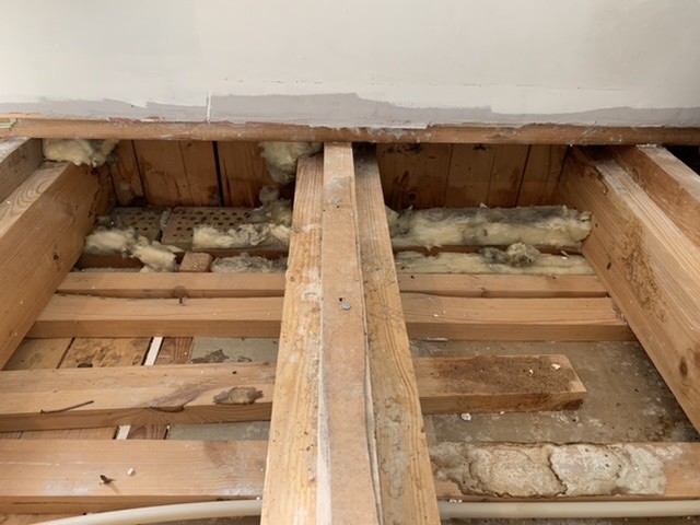I befintlig konstruktion är det bara mineralull utan några spärrar - fann därför även några trevliga bikupor i mellanbjälklaget!