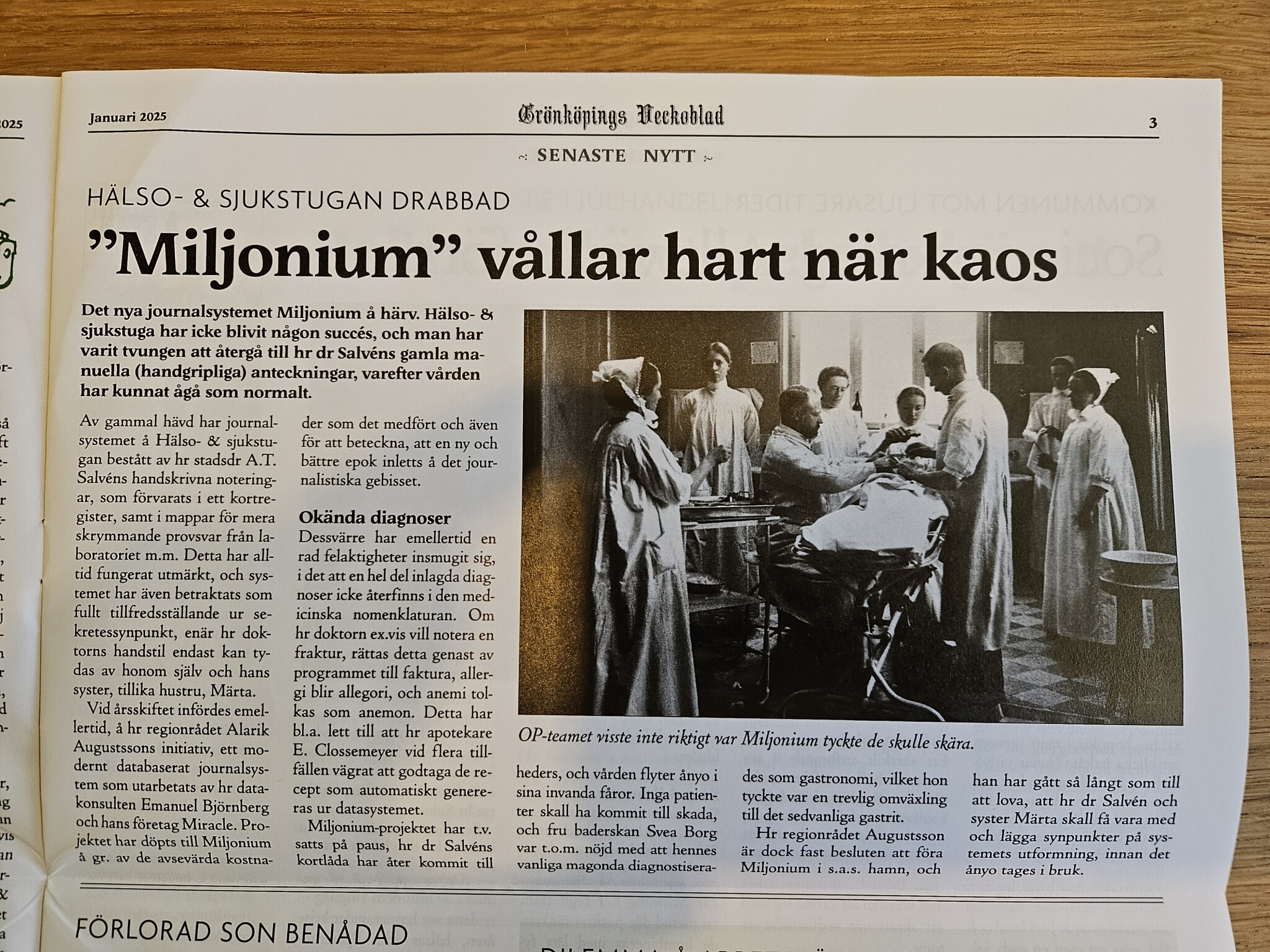 Och svårt blir det även på samma sjukhus när det är en multisjuk person. Jag var med och digitaliserade onkologen på ett sjukhus för inte allsa många år sedan. Innan dess hade varje patient en pärm med hela behandlingen registrerad och alla beställningar skickades med fax, där sedan en sköterska måste så och vänta på svaret om det var akut. De räknade ut att de sparade flera miljoner vare år bara på tiden de slipper faxa och vänta på fax, och istället skicka beställningarna med ett knapptryck på datorn och få ett "pling" när svaret är klart.