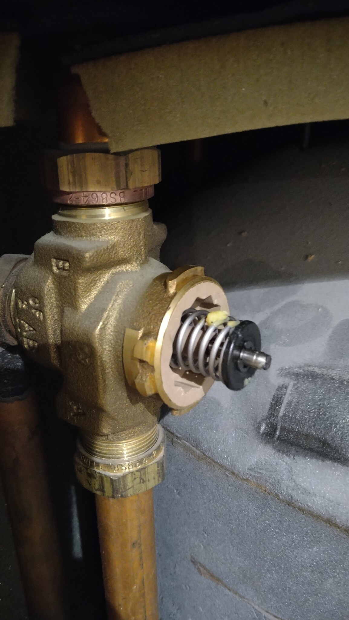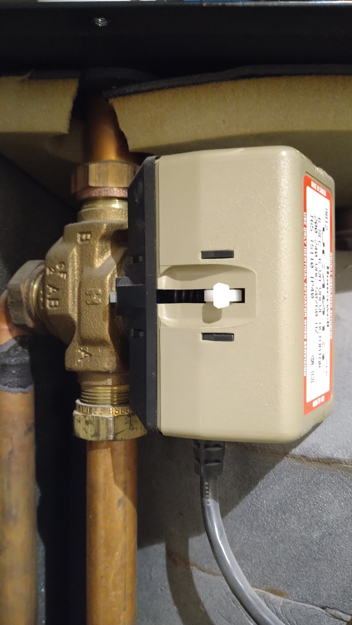 Om du har en honeywell 4012-4013 så kan du genom att trycka på den vita knappen som sitter på ventilhuset och vrida moturs så lossnar ställdonet (motorn) och nu ser du insatsventilen och där brukar själva problemet uppstår för insatsventilen börjar kärva och fastnar öppen mot värmesystemet när den tillverkar varmvatten. Ta lite smörjmedel och tryck uppifrån på insatsventilen några gånger så kan det släppa.Den vita armen om sitter på ställdonet kan du dra nedåt några gånger så ska den fjädra upp av sig själv.J jahallåja skrev: