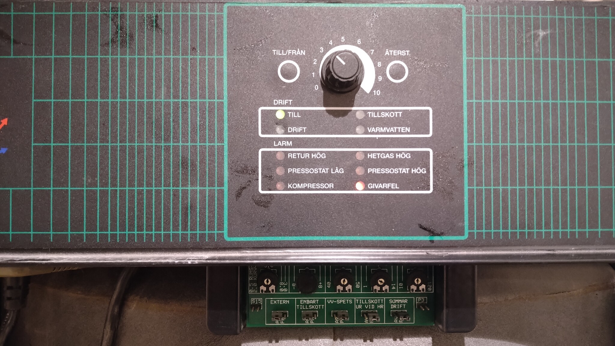 Nytt startförsök. Ändrade en inställning så att tillskott inte får användas för att värma radiatorsystem utan bara varmvatten. Startade, den visar fortfarande givarfel, men nu går elpatron igång och växelventil verkar vara ställd på varmvatten (spak ner/vänster).