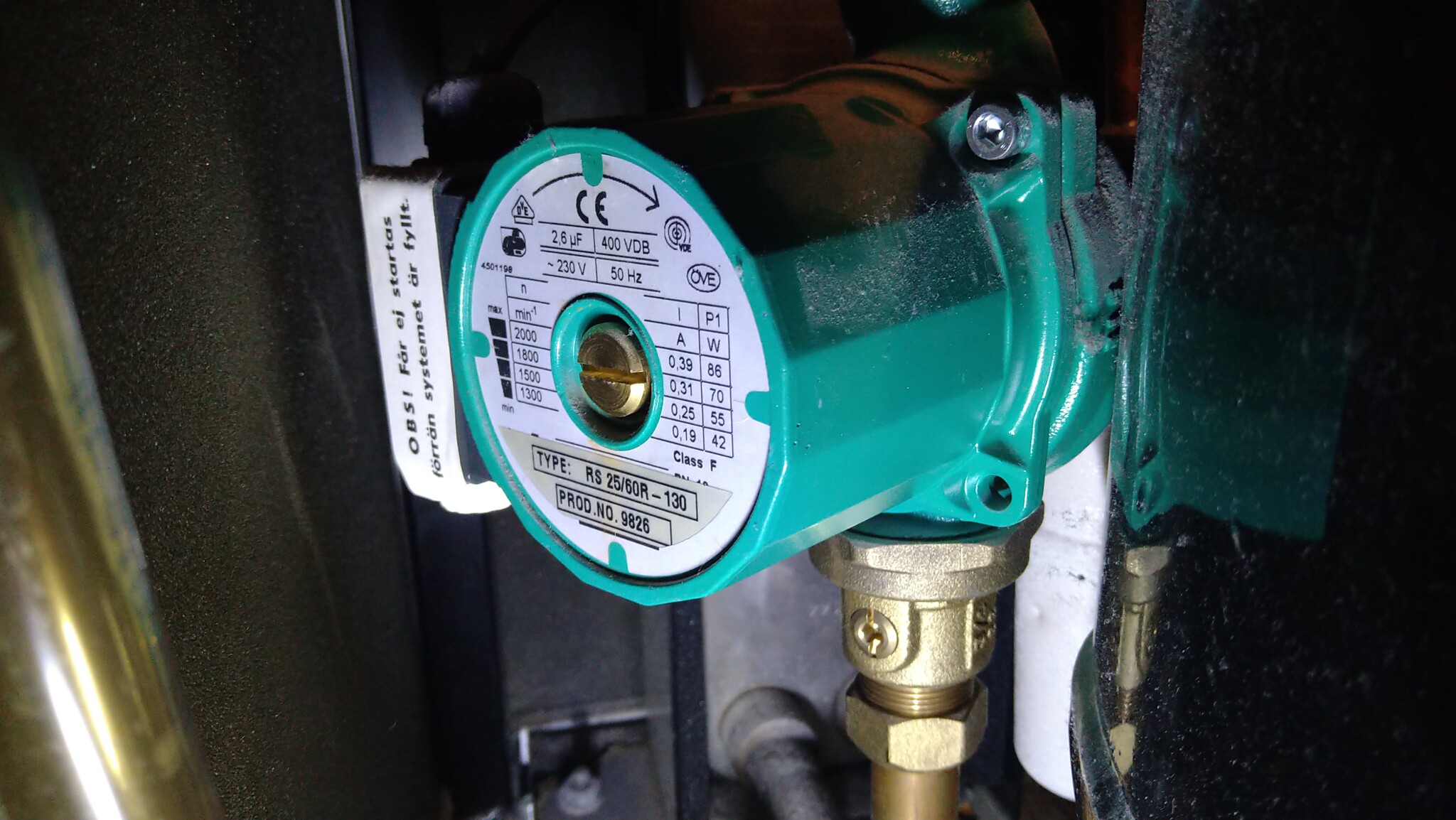 Noterar dock att en cirkulationspump känns varm trots att inget av rören till den är varma.