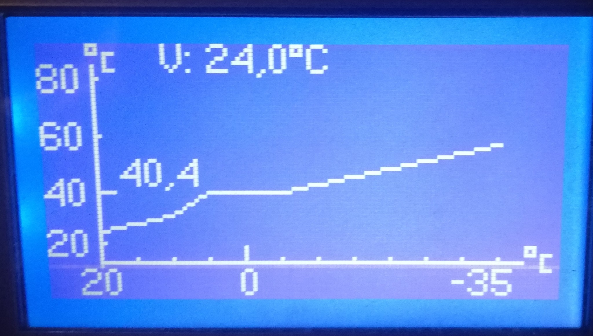 Jag pratade med VVSarn och han bad mig ändra värmekurvan kring temperaturerna -5 till +5 grader så att den ligger på 40 grader (Se bild), men det känns som en konstig lösning. Ska inte kurvan mer eller mindre vara linjär?