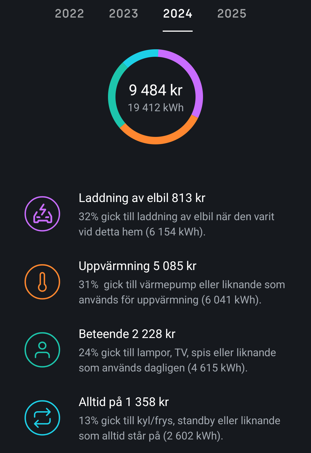 Förbrukar ungefär som er med 19412kWh/år varav bil 6204kWh.P PeKa7880 skrev: