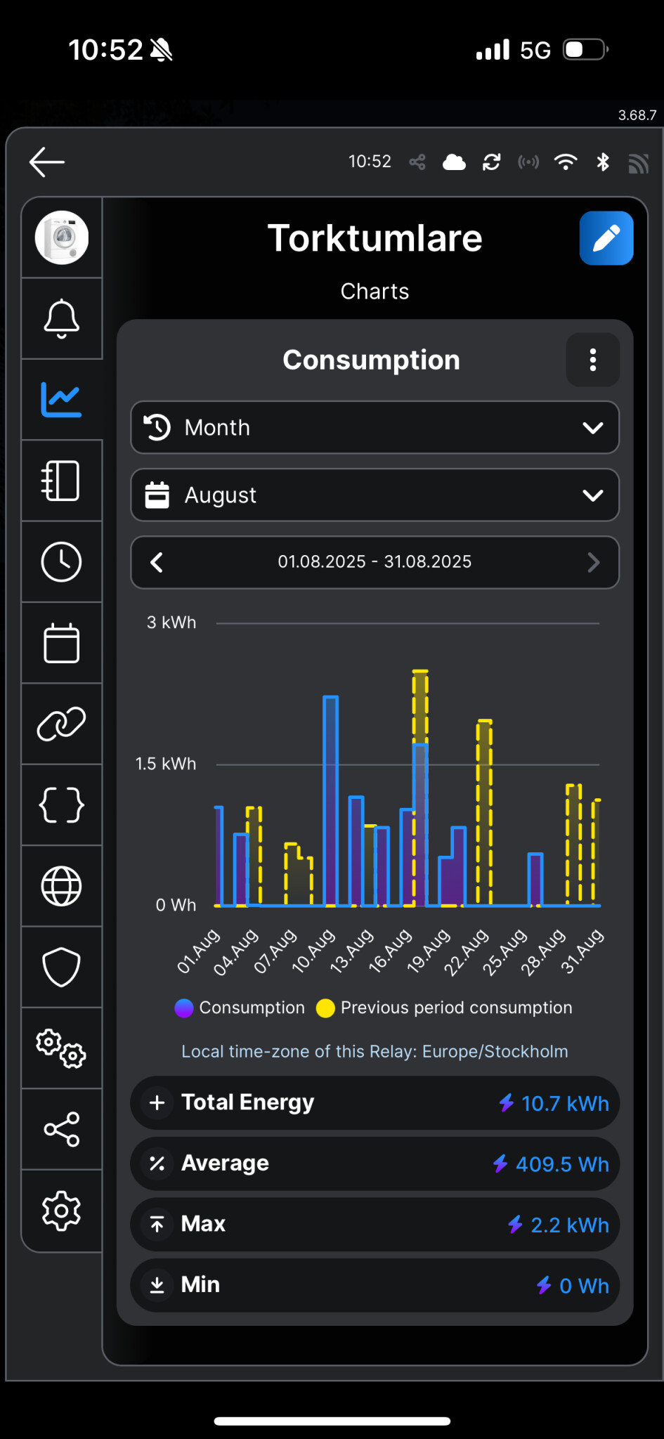 Nu är augusti fel månad då ej blivit kallt men så här ser det ut hos oss, men flytta disk/tvätt spelar inte så stor roll som vissa påstår med Timpris.