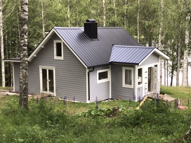 Postar en bild på exteriören, då och nu. Och då föll vi faktiskt för den stygga timringen där vid 2016...
