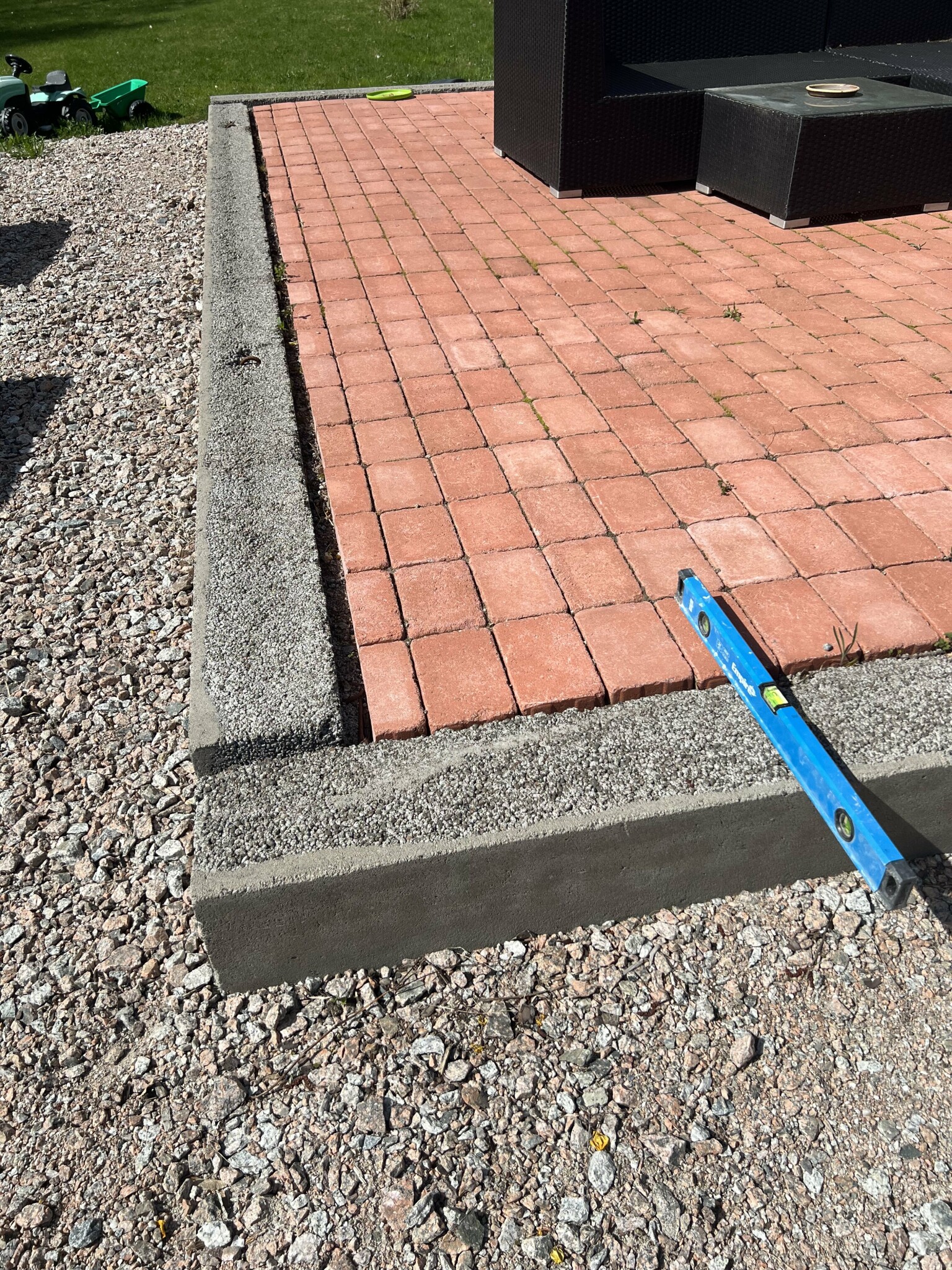 Jag håller på att bygga ett uterum. Grund med alba-balkar ligger redan på plats sedan två år tillbaka. På dessa ska jag ställa skjutpartier (och limträ-stolparna som bär upp allt).